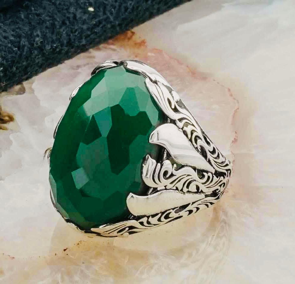 Description: This bold men’s ring is crafted from 925 sterling silver and set with a striking green zircon stone. The vivid color of the zircon adds a touch of elegance and individuality, making it a standout accessory for daily wear or special occasions.