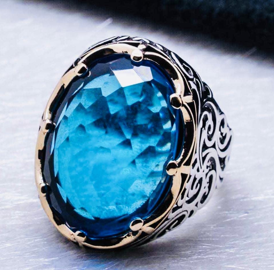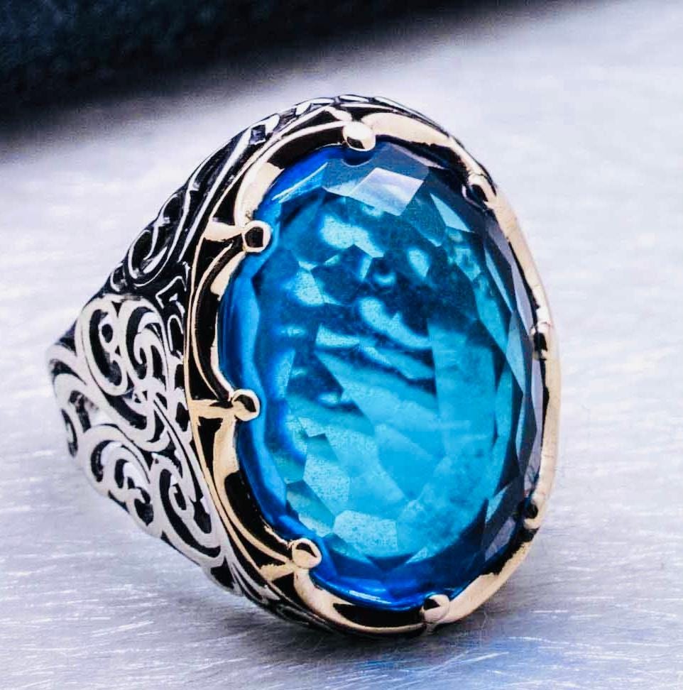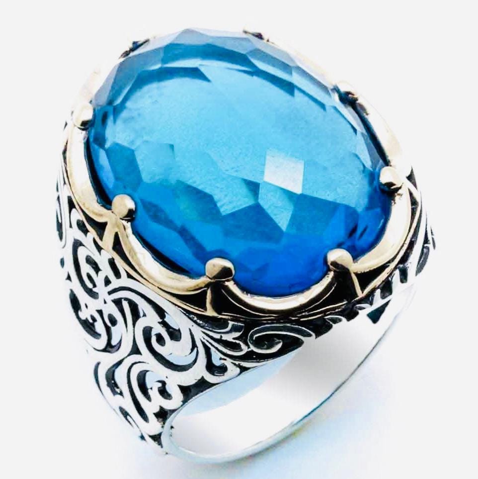 Description: This bold men’s ring is crafted from 925 sterling silver and set with a sparkling light blue zircon stone, complemented by an intricate crown design. Symbolizing power and elegance, it makes a perfect statement piece for men who want to express their individuality. Ideal for everyday wear or as a meaningful gift.