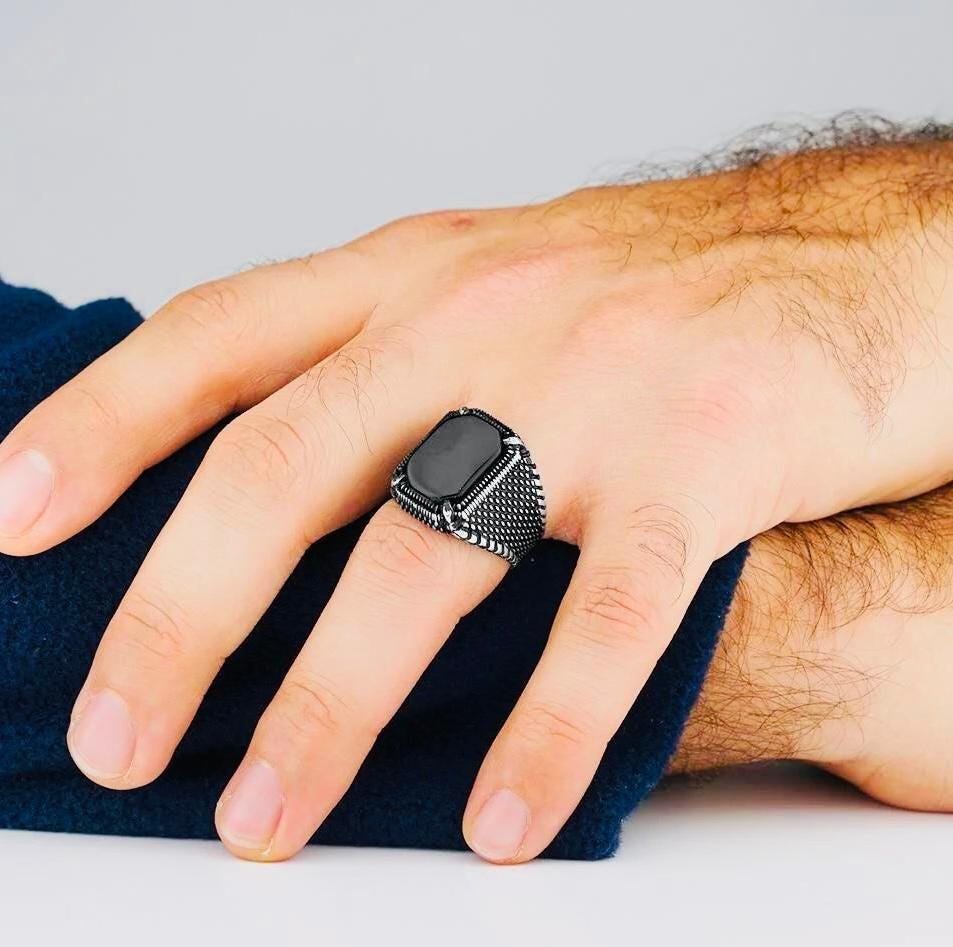 Description: This sterling silver men’s ring features a bold black onyx stone, symbolizing strength and elegance. Crafted with 925 sterling silver using detailed craftsmanship, it’s perfect for both everyday wear and special occasions. A timeless piece of men’s jewelry and an ideal gift choice.