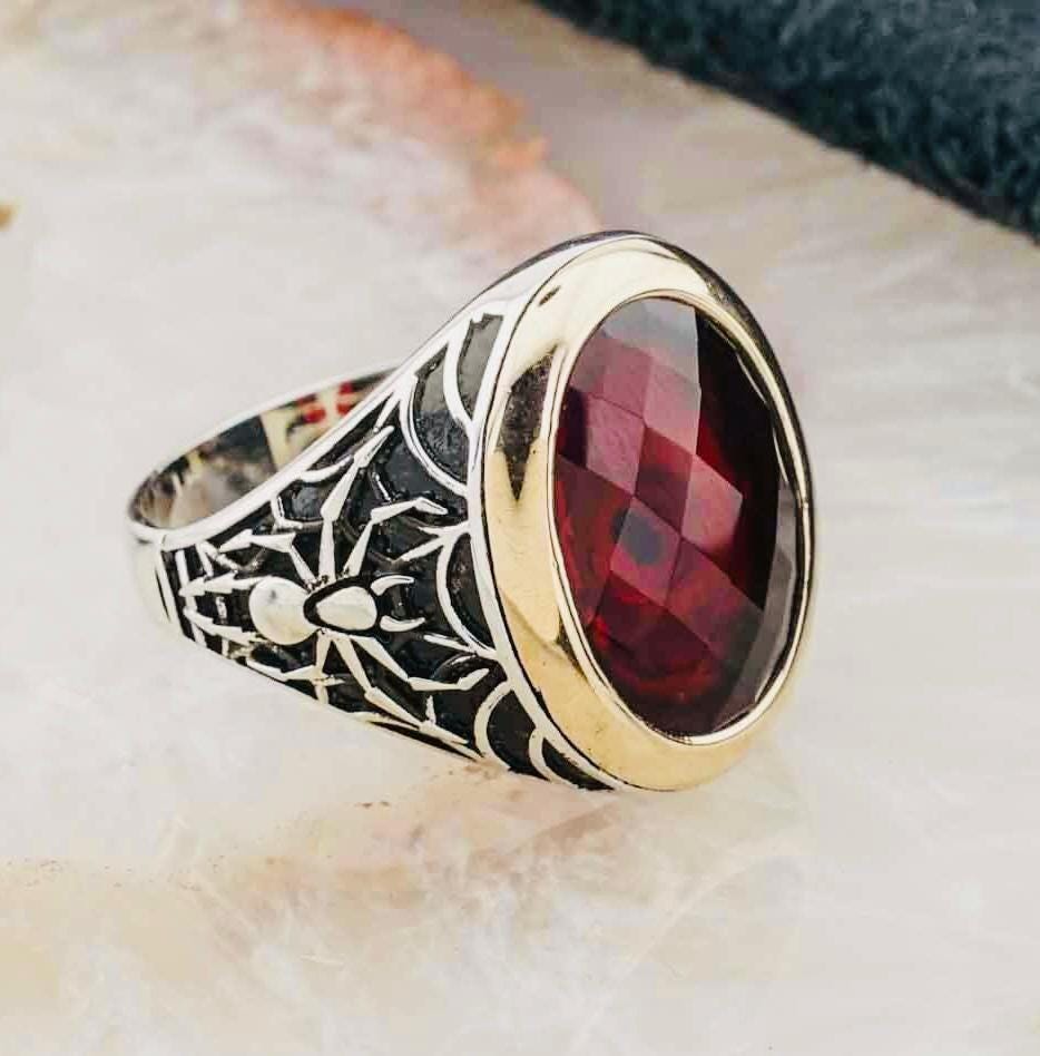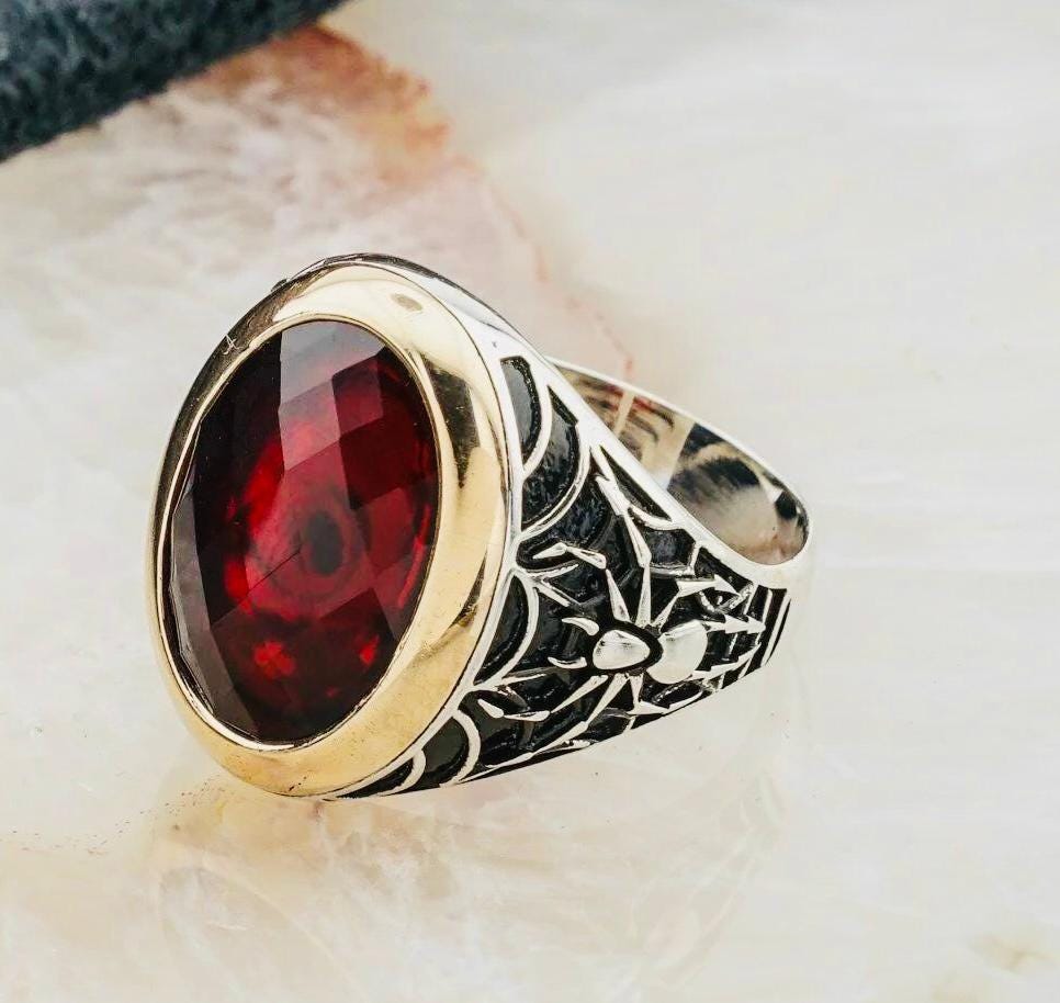 Description: This unique men’s ring is crafted from 925 sterling silver, featuring a striking red zircon stone combined with a detailed spider design. Bold and symbolic, it represents strength and individuality. Perfect for men who want to stand out with a statement piece of jewelry, whether for daily wear or special occasions.