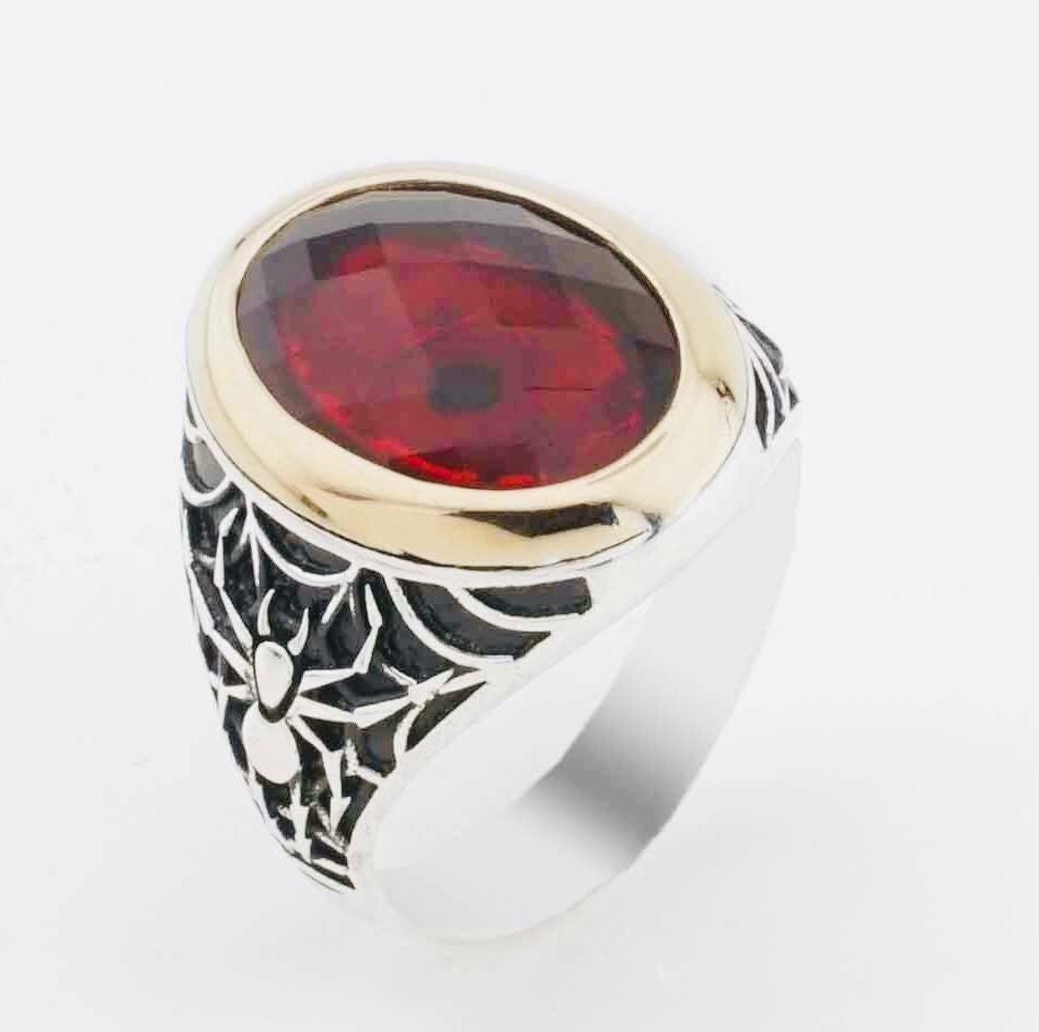 925 Sterling Silver Men’s Ring with Red Zircon and Spider Design