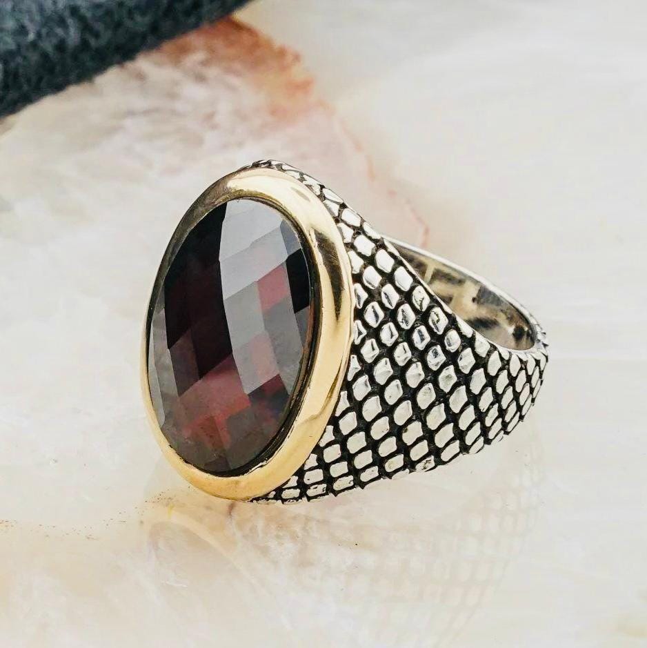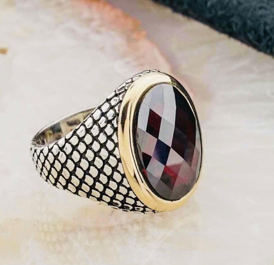 Description: This bold men’s ring is crafted from 925 sterling silver and set with a striking red zircon stone. Its detailed patterned design adds character and elegance, while the vibrant red stone symbolizes passion and strength. Perfect for everyday wear or as a special gift, delivered in a stylish ring box.