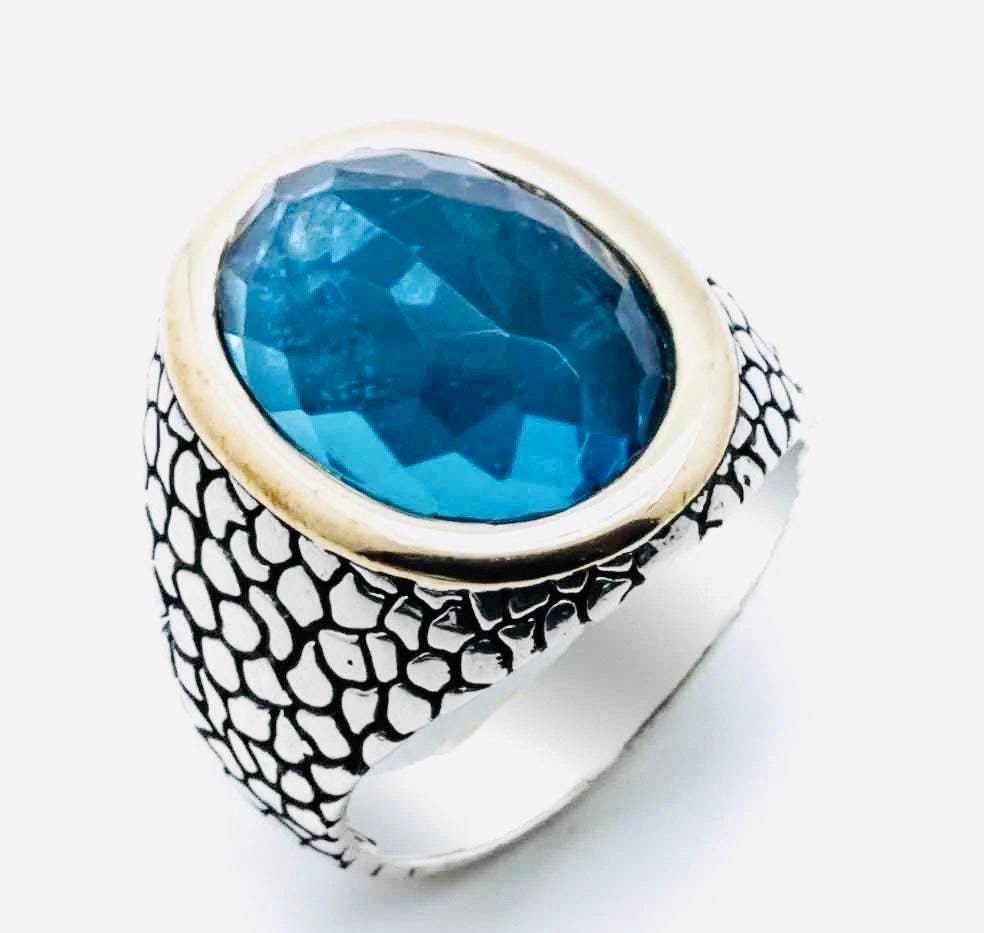 Description: This elegant men’s ring is crafted from 925 sterling silver and set with a light blue zircon stone, radiating a calming and refined shine. A perfect blend of tradition and modern style, this ring is ideal for everyday wear or as a meaningful gift for someone special.