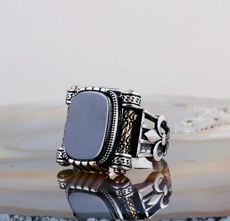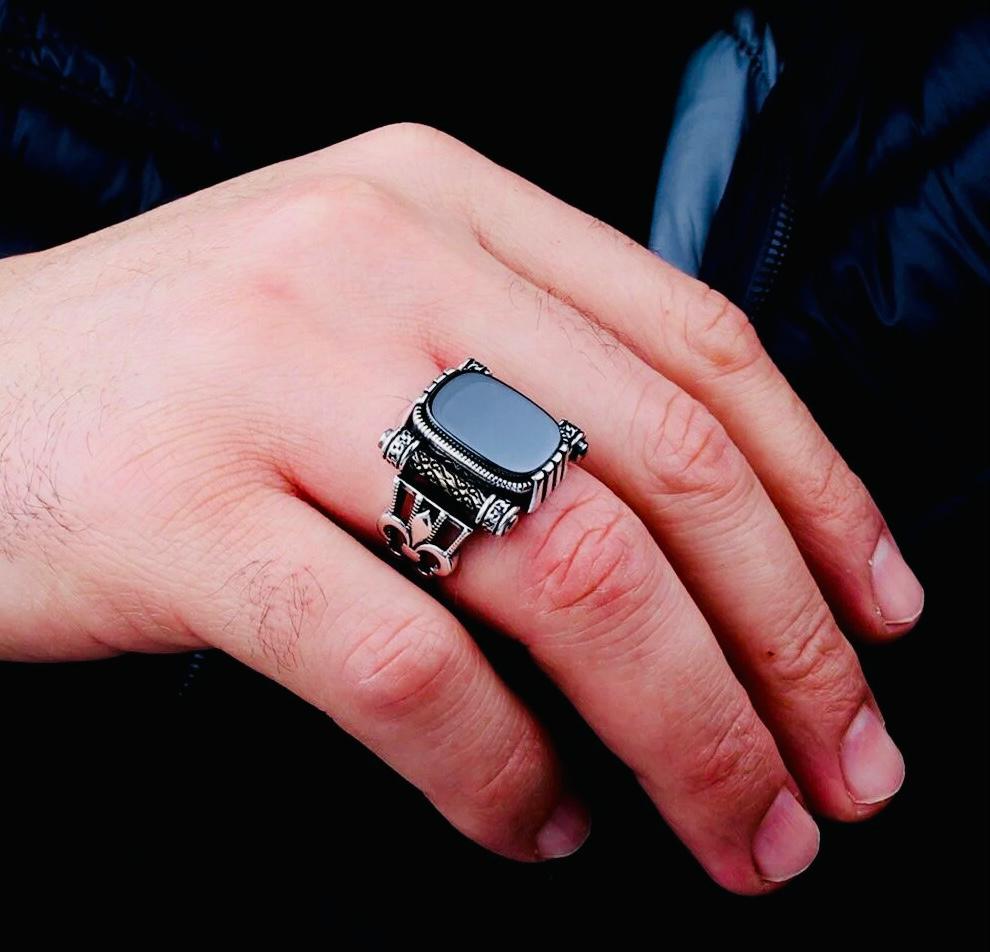 Description This men’s ring is crafted from 925 sterling silver and features a bold onyx stone measuring 12x16 mm. Known for its elegance and strength, the onyx stone adds a timeless charm to this handcrafted design. Delivered with a ring box and cleaning cloth, it’s perfect for everyday wear or as a meaningful gift for him.