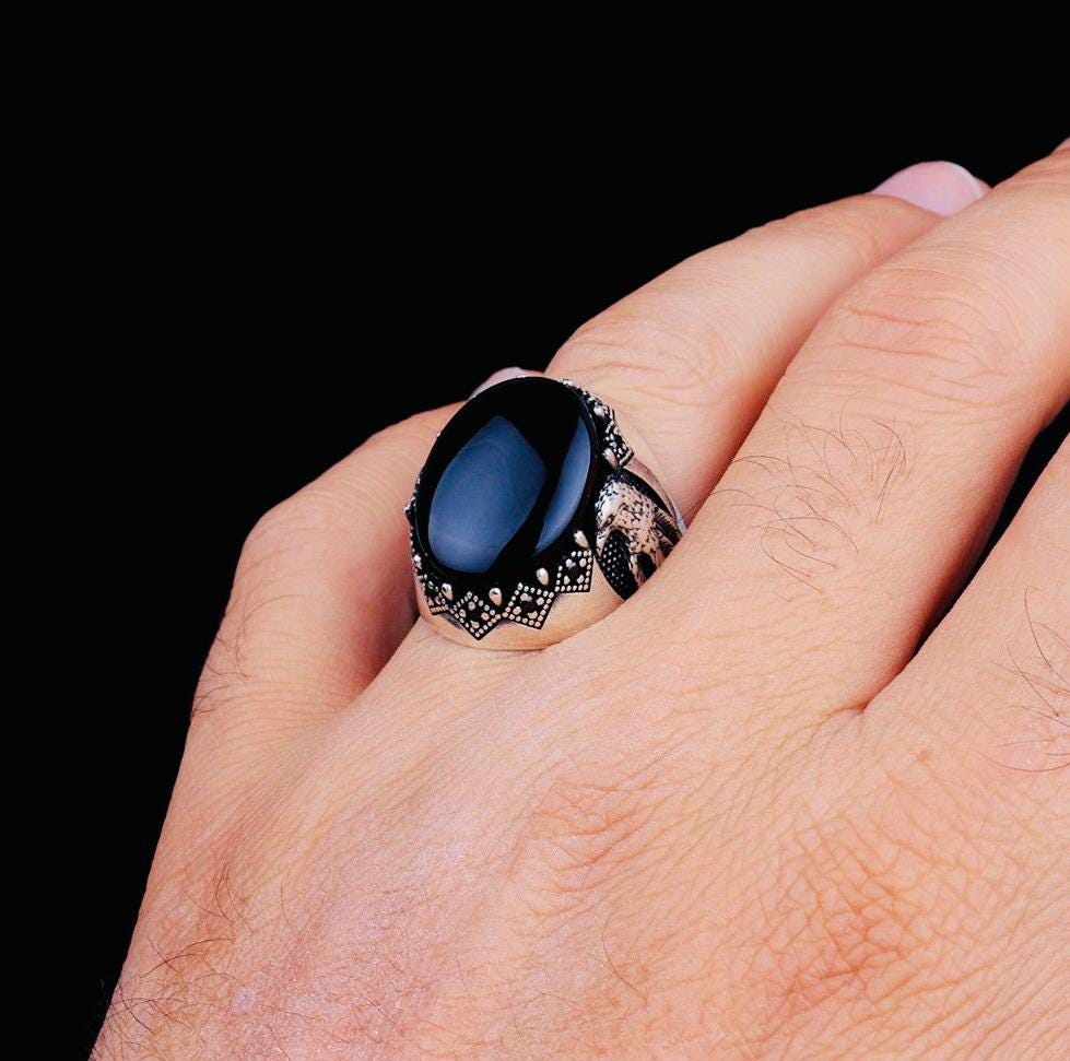 Product Details • Material: 925 sterling silver • Stone: Onyx • Weight: 13 g • Stone Size: 11x8 mm • Handcrafted • Comes with ring box and cleaning cloth