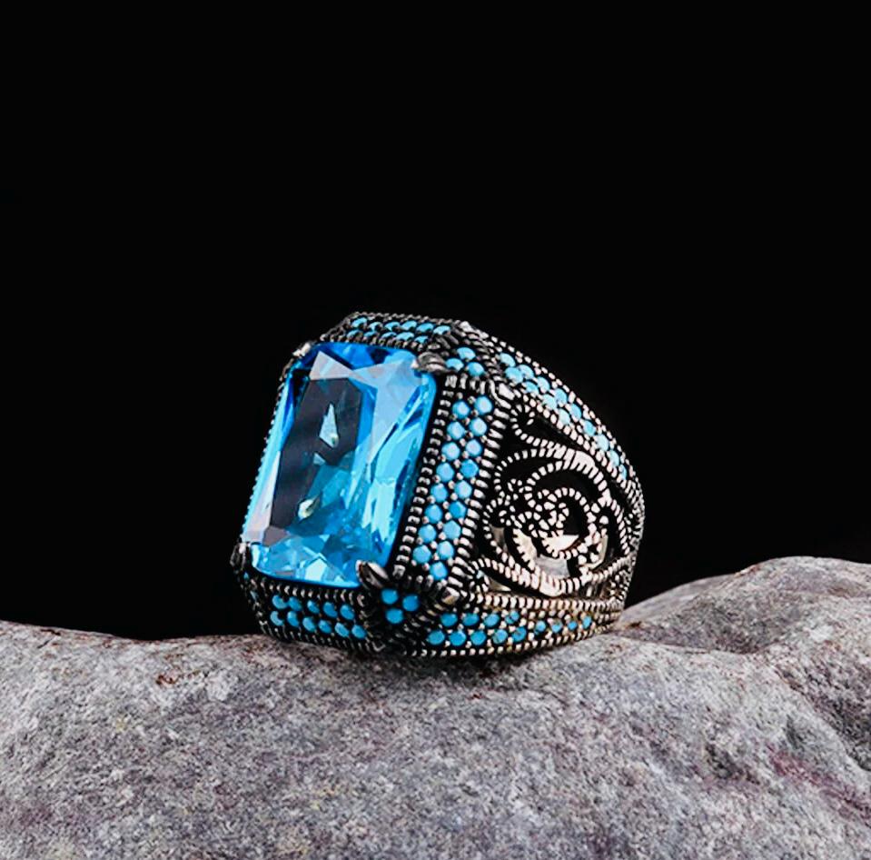 Description This men’s ring is handcrafted from 925 sterling silver and features a striking aqua stone. Known for its unique color and elegance, the aqua stone adds a refined touch to any style. Perfect for everyday wear or as a meaningful gift, this ring comes with a special box and cleaning cloth for long-lasting shine.