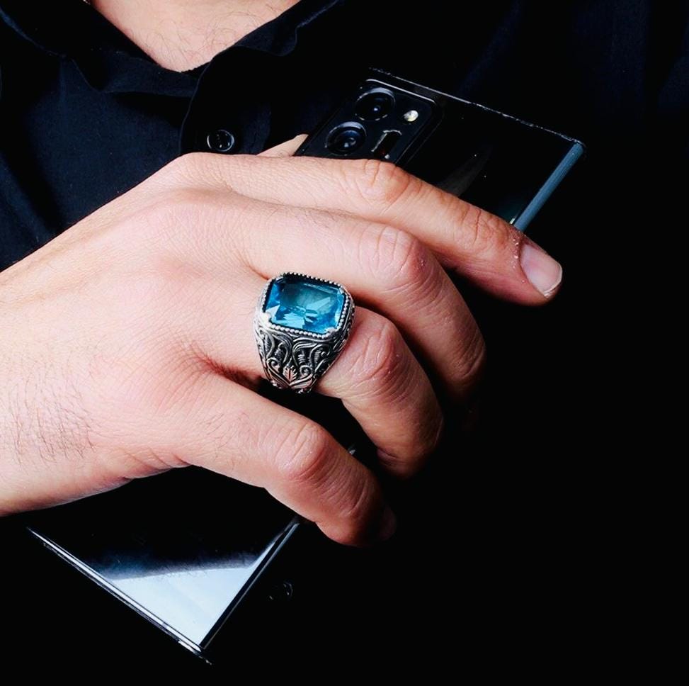 Description This men’s ring is crafted from 925 sterling silver and features a stunning aqua zircon stone. Handcrafted with care, its elegant design makes it perfect for both everyday wear and special occasions. Delivered with a ring box and cleaning cloth, it’s also a thoughtful gift option for someone special.