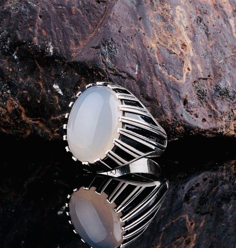 Description: This men’s ring is crafted from 925 sterling silver and set with a natural moonstone, known for its luminous glow and mystical energy. The moonstone is believed to bring balance, intuition, and calmness, making this ring not just a stylish accessory but also a meaningful piece. Handcrafted with care and delivered in a ring box with a cleaning cloth, it’s a perfect choice for both daily wear and as a thoughtful gift for him.