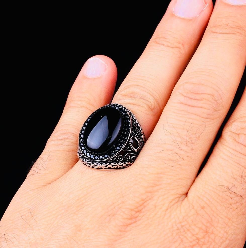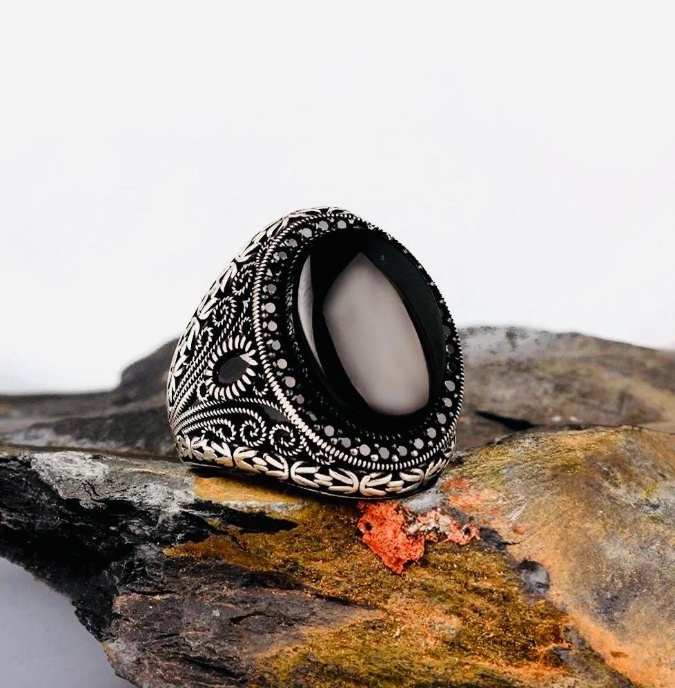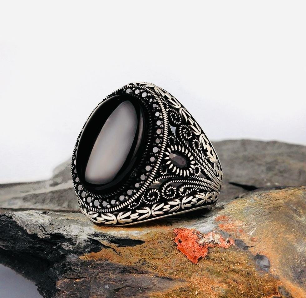 Product Details: • Material: 925 sterling silver • Stone: Onyx • Top Size: 13x18 mm • Weight: 12 g • Handcrafted • Comes with ring box and cleaning cloth