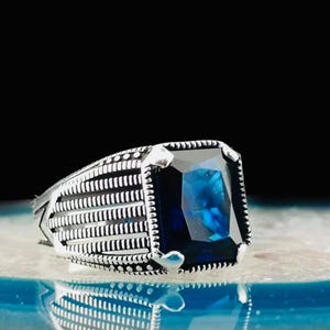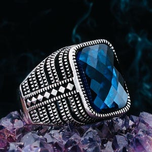 Product Details: • Material: 925 sterling silver • Stone: Zircon (Blue) • Stone Size: 10x12 mm • Weight: 10 g • Handcrafted • Comes with ring box and cleaning cloth