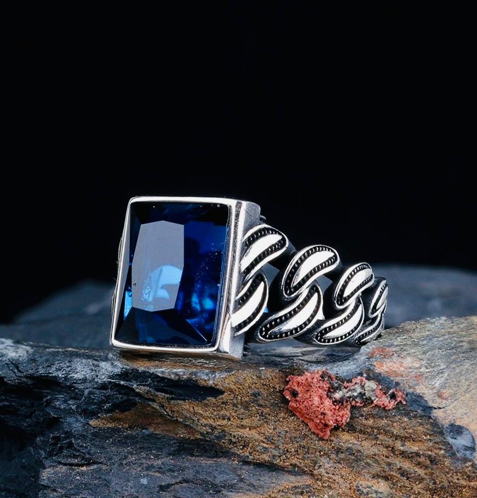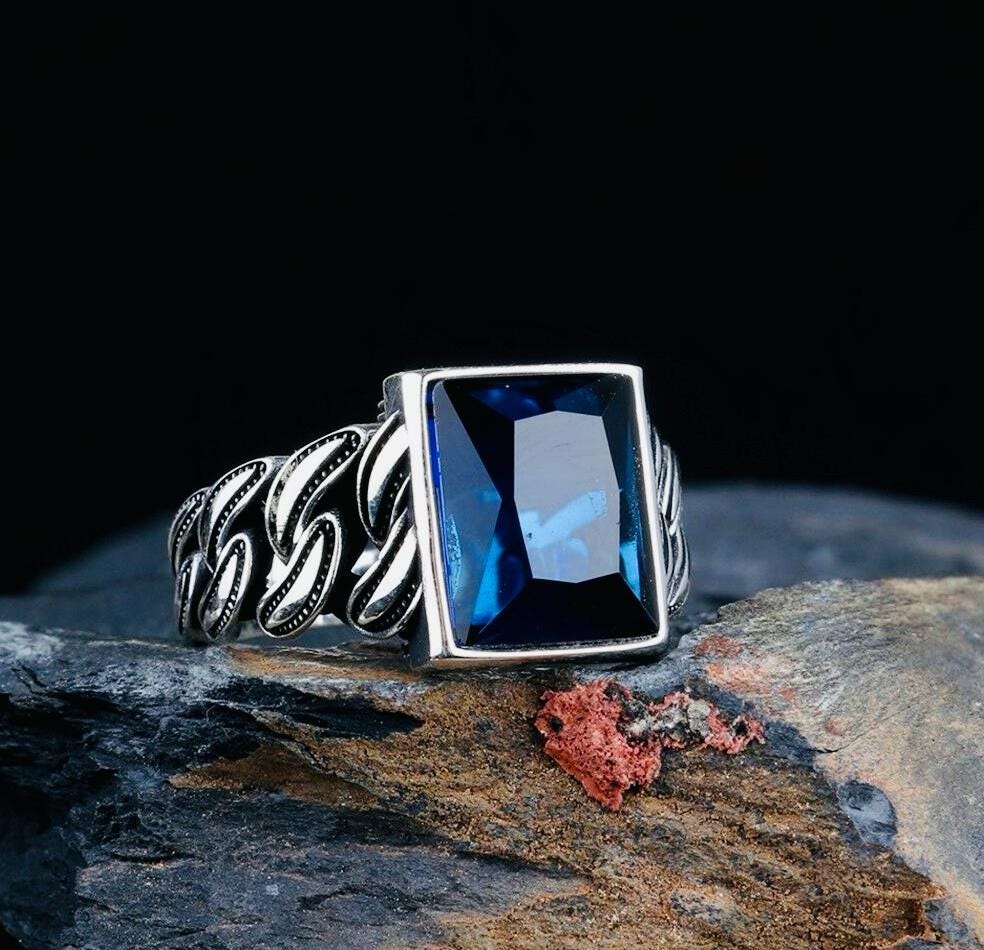 Description: This handcrafted men’s ring is made from 925 sterling silver and features a striking blue zircon stone (10x12 mm). The woven design adds a unique and stylish touch, making it a perfect blend of classic and modern. Ideal for everyday wear or as a meaningful gift, it is delivered in an elegant ring box with a cleaning cloth.