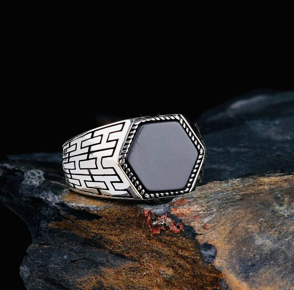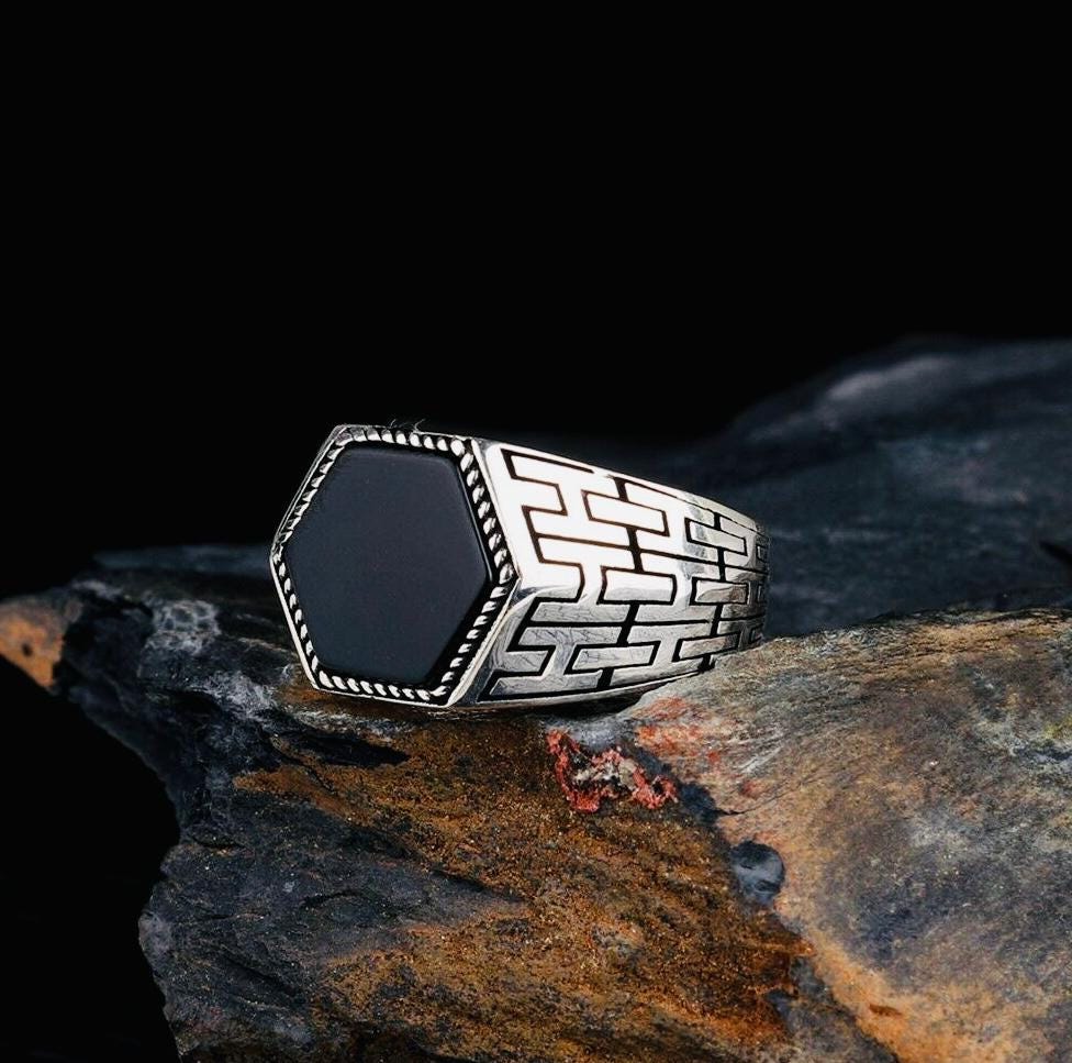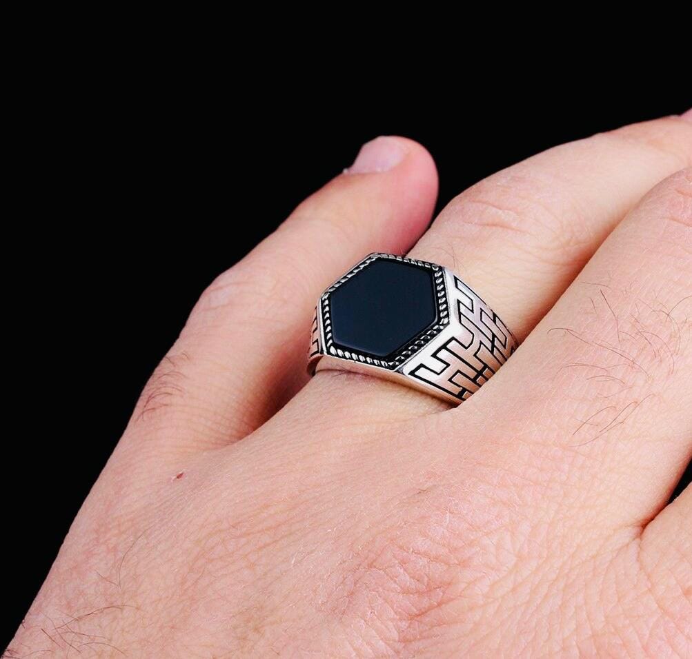 Product Details: • Material: 925 sterling silver • Stone: Onyx • Weight: 10 g • Stone Size: 10x10 mm • Handcrafted • Comes with ring box and cleaning cloth