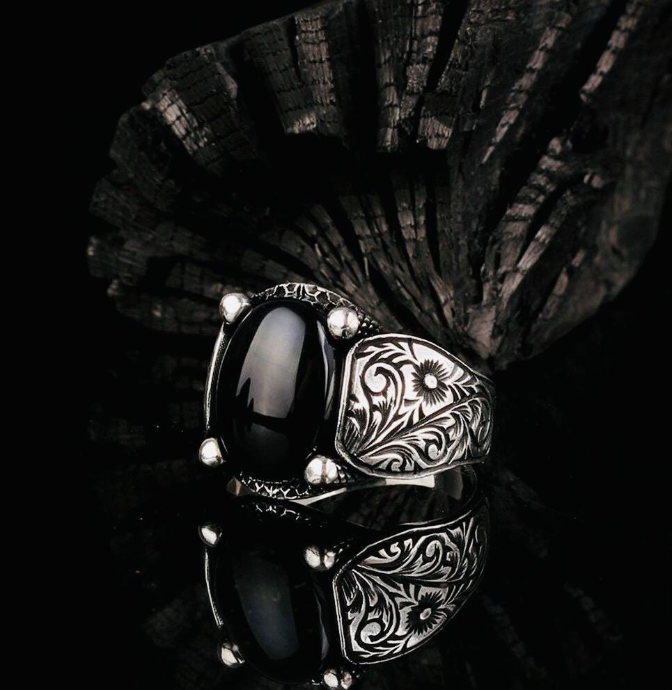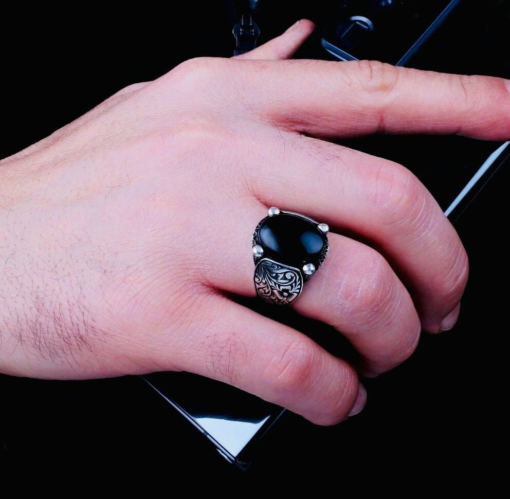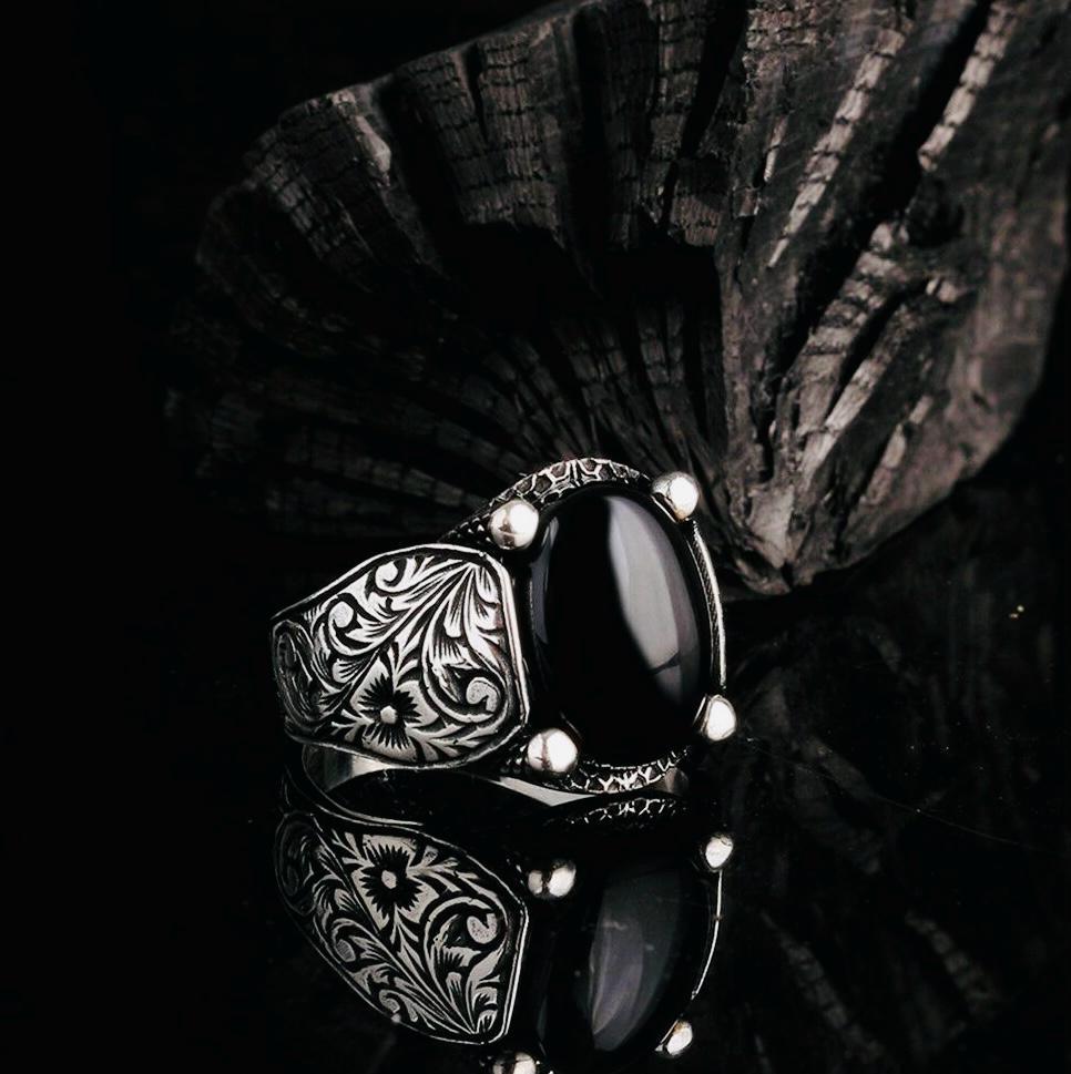 Product Details: • Material: 925 sterling silver • Stone: Onyx • Weight: 10.5 g • Stone Size: 13x18 mm • Handcrafted • Comes with ring box and cleaning cloth