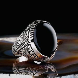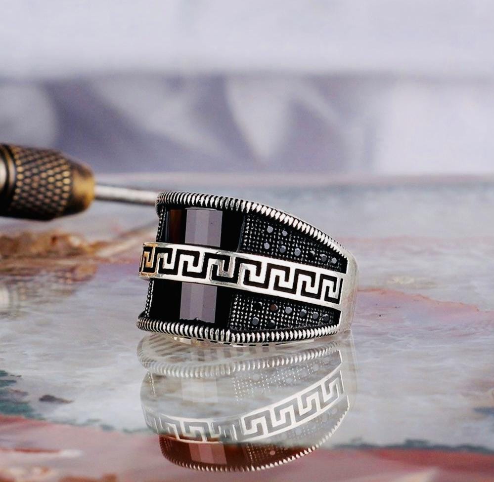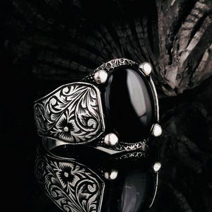 Product Details: • Material: 925 sterling silver • Stone: Black zircon • Weight: 10 g • Stone Size: 10x12 mm • Handcrafted • Comes with ring box and cleaning cloth