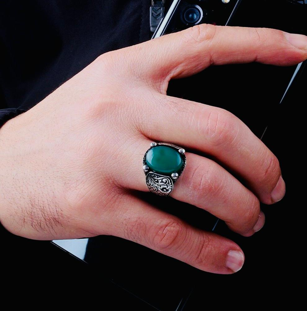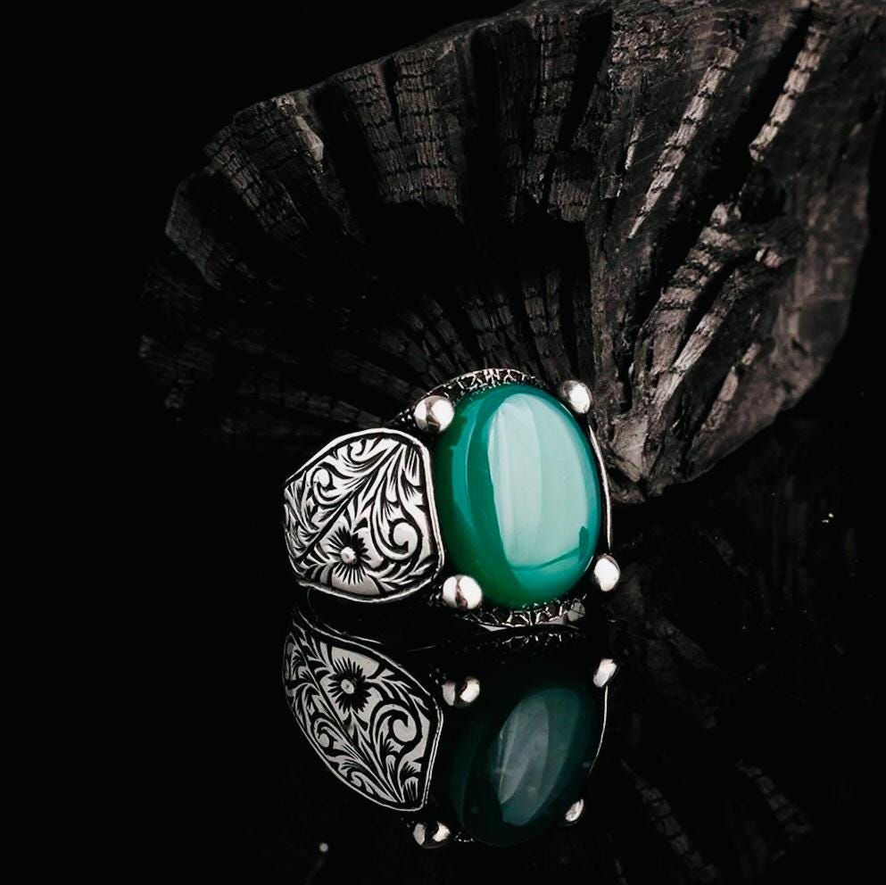 Description: This men’s ring is crafted from 925 sterling silver and features a striking green agate stone measuring 13x18 mm. The hand-engraved design around the stone highlights its natural beauty, making it a symbol of elegance and strength. Perfect for everyday wear or as a meaningful gift, delivered in a ring box with a cleaning cloth.