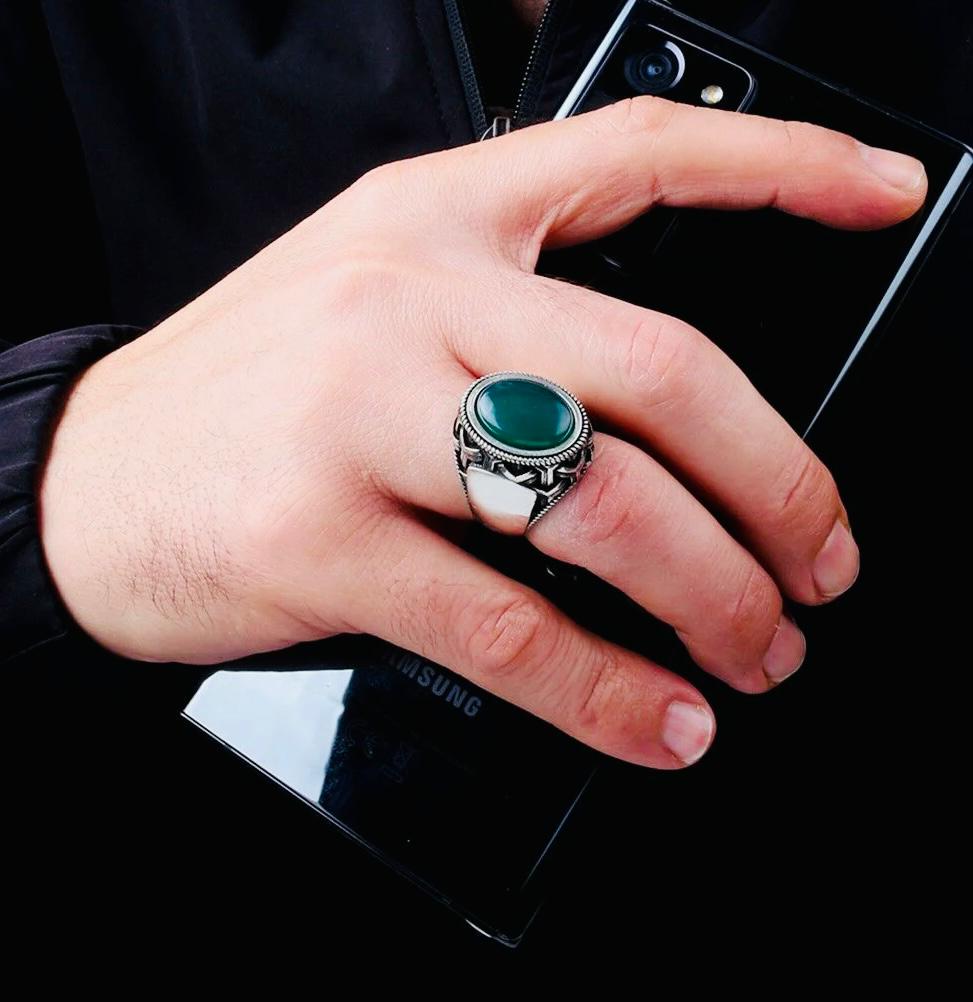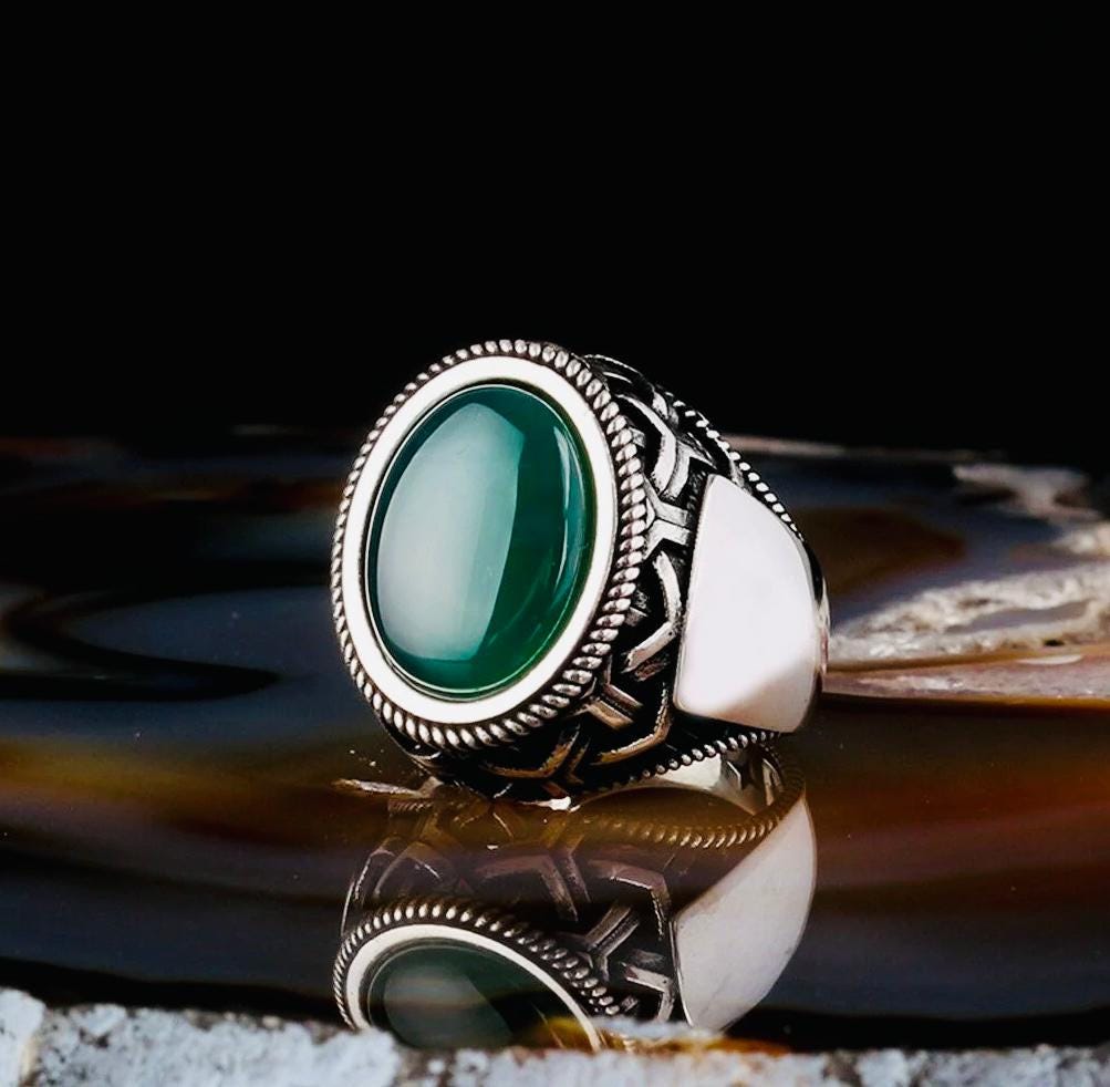 Description: This men’s ring is handcrafted from 925 sterling silver and features a bold green agate oval stone measuring 11x15 mm. Known for its grounding energy and natural beauty, the agate stone adds elegance and strength to the design. Delivered with a ring box and cleaning cloth, it’s a perfect choice for everyday wear or as a meaningful gift.
