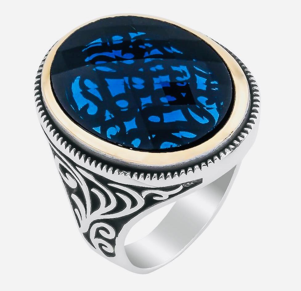 925 Sterling Silver Men’s Ring with Oval Blue Zircon Stone