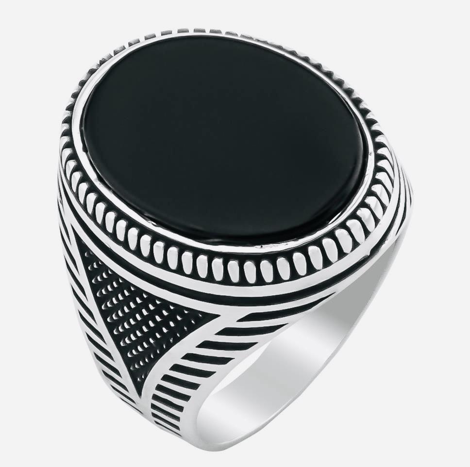 Product Details: • Material: 925 sterling silver • Stone: Black Onyx • Weight: approx. 10.3 g (may vary by size) • Dimensions: 1.5 cm x 2 cm • Finish: Polished • Comes in a ring box