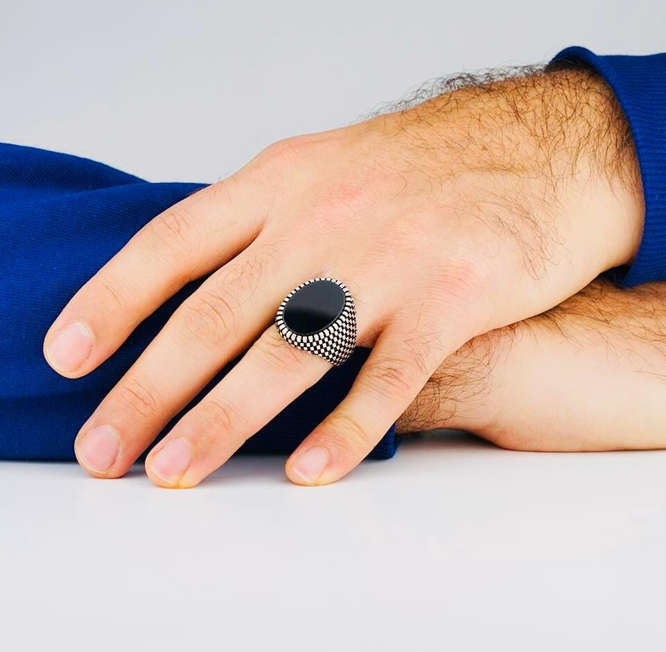 Product Details: • Material: 925 sterling silver • Stone: Black Onyx • Weight: approx. 10.7 g (may vary by size) • Dimensions: 1.5 cm x 2 cm • Finish: Polished • Comes in a ring box