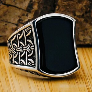Product Details: • Material: 925 sterling silver • Stone: Black Onyx • Weight: approx. 6.7 g (may vary by size) • Dimensions: 1 cm x 1.2 cm • Finish: Polished • Comes in a ring box