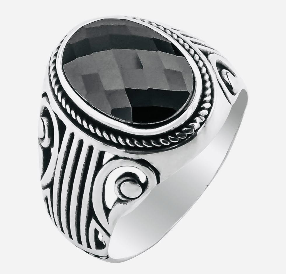 Product Details: • Material: 925 sterling silver • Stone: Black Zircon • Weight: approx. 9.7 g (may vary by size) • Dimensions: 1 cm x 1.4 cm • Finish: Polished • Comes in a ring box