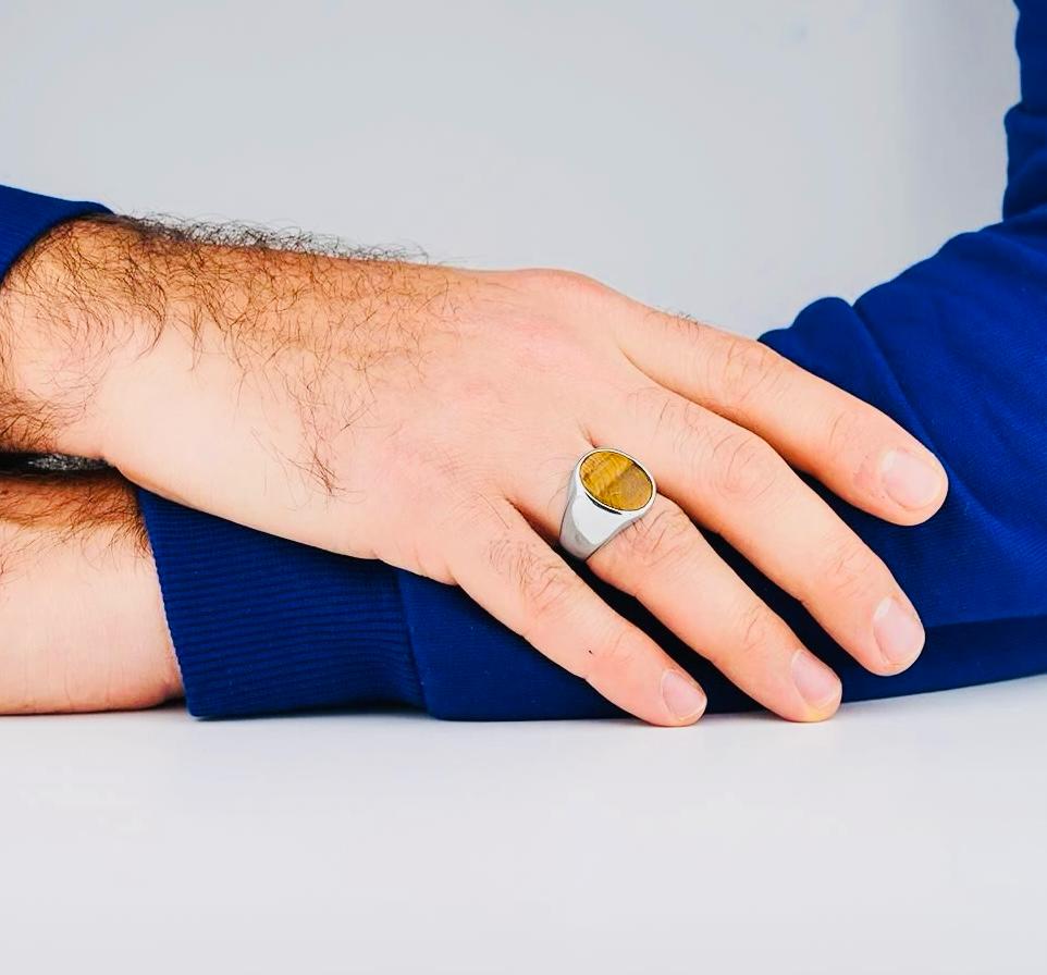 Description: This men’s ring is crafted from 925 sterling silver and features an oval Tiger’s Eye stone with a polished finish. Known for its protective and grounding properties, Tiger’s Eye adds both strength and elegance to your style. Perfect for daily wear or as a meaningful gift, delivered in a premium ring box.