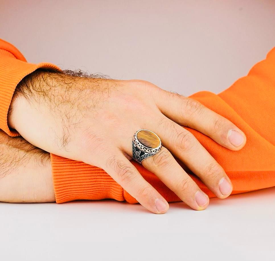 Description: This men’s ring combines the natural beauty of Tiger’s Eye with the historical elegance of the Ottoman Tughra motif. Handcrafted from 925 sterling silver, it symbolizes strength and heritage while adding a stylish touch to any outfit. Delivered in a premium ring box, it also makes a meaningful gift for him.