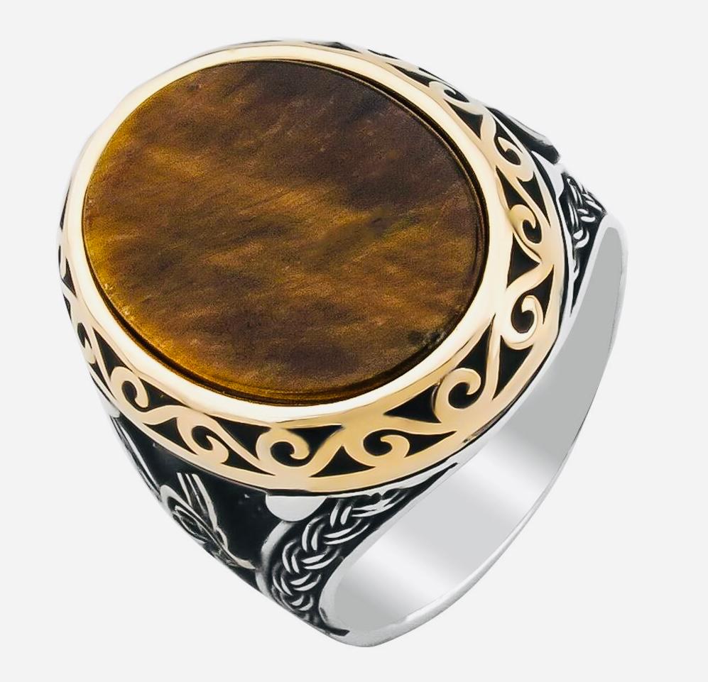 925 Sterling Silver Men’s Ring with Tiger’s Eye and Ottoman Tughra Design