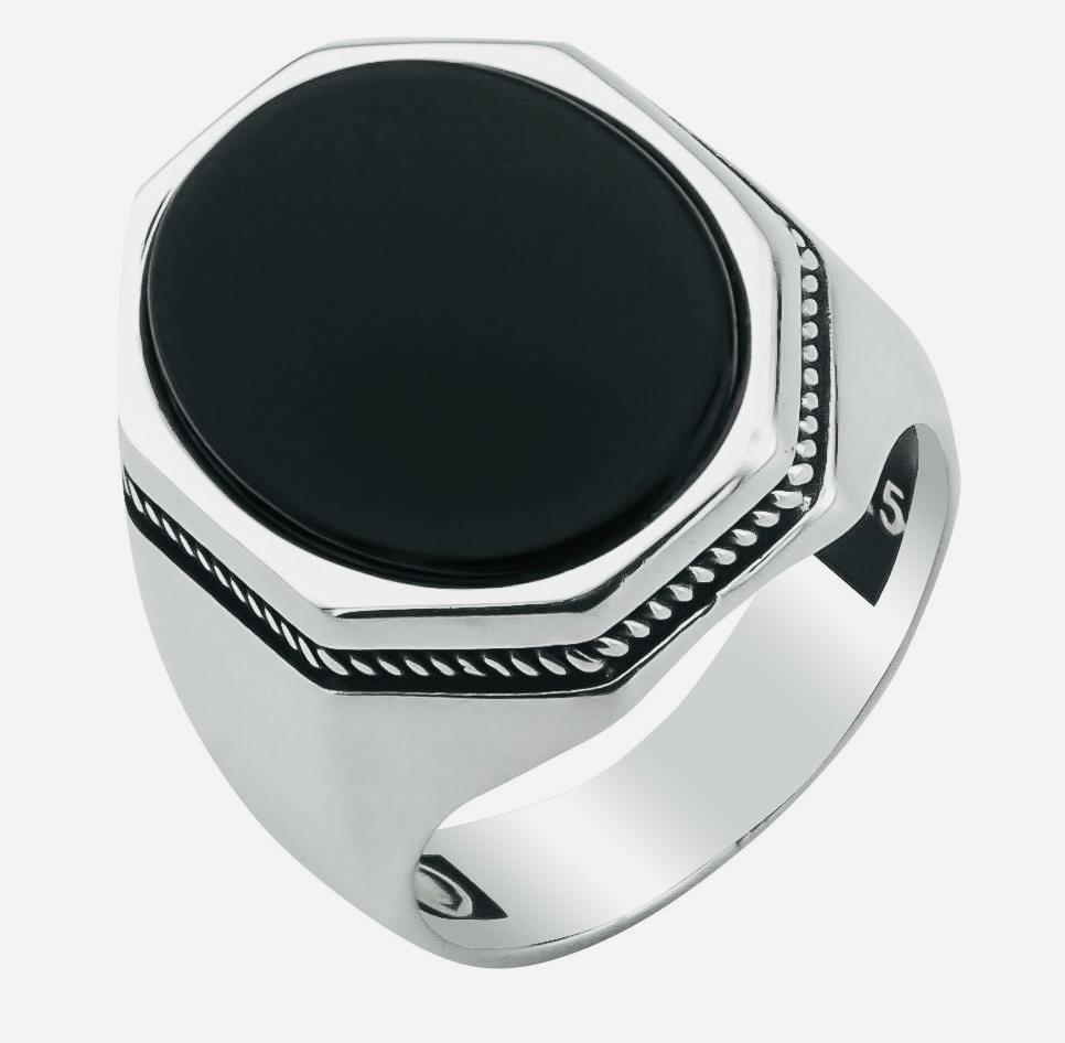 925 Sterling Silver Men’s Ring with Black Onyx – Octagon Design