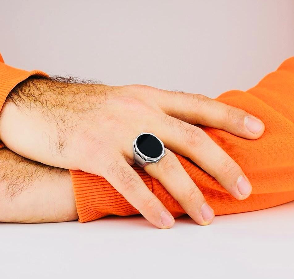Description: This men’s ring is crafted from 925 sterling silver and features a bold octagon design set with a black onyx stone. The polished surface highlights its modern and masculine look, while the onyx adds a timeless elegance. Perfect for everyday wear or special occasions, delivered in a premium ring box.