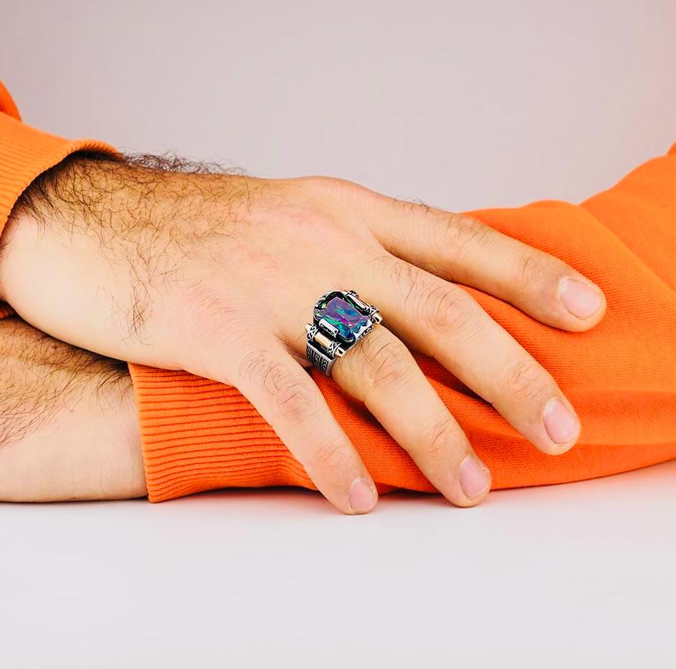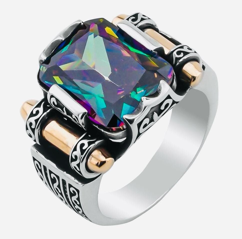 Description: This unique men’s ring features the captivating colors of mystic topaz combined with intricate ornamental details. Crafted from 925 sterling silver, it blends elegance and individuality, making it perfect for both daily wear and special occasions. Delivered in a premium ring box, it also makes a distinctive gift for him.