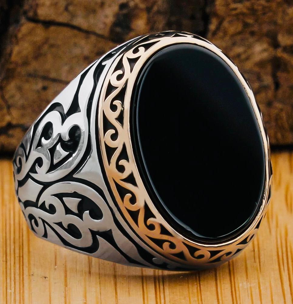 Product Details: • Material: 925 sterling silver • Stone: Black onyx • Weight: approx. 14.3 g • Dimensions: 1.5 cm x 2 cm • Finish: Polished • Comes in a ring box