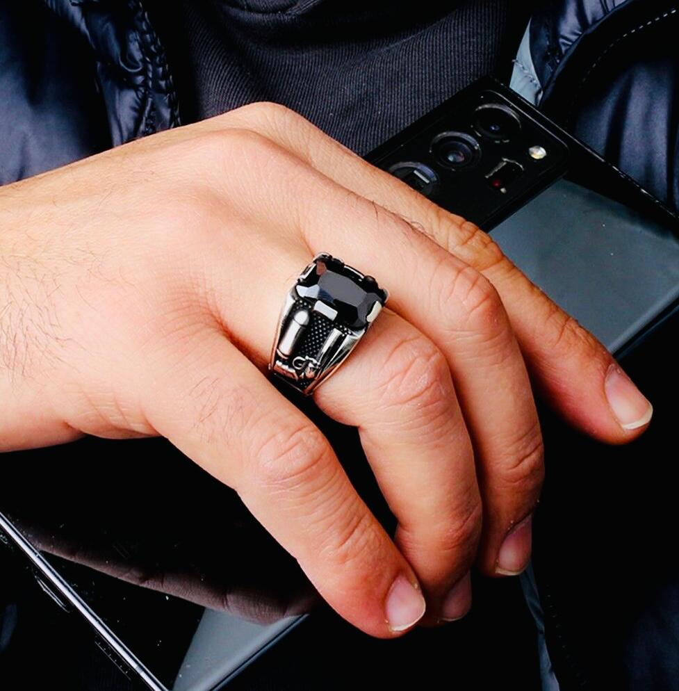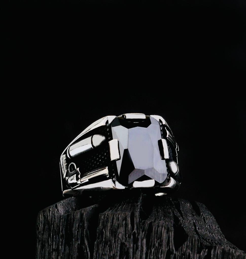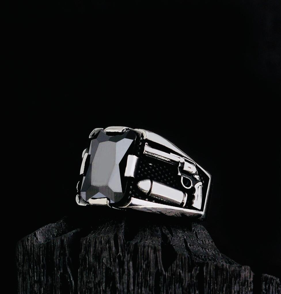 Description: This men’s ring is crafted from 925 sterling silver and features a bold revolver-inspired design set with a sparkling zircon stone. Handcrafted with precision, it symbolizes strength and determination. Perfect for everyday wear or as a unique gift, it comes in an elegant ring box with a cleaning cloth.