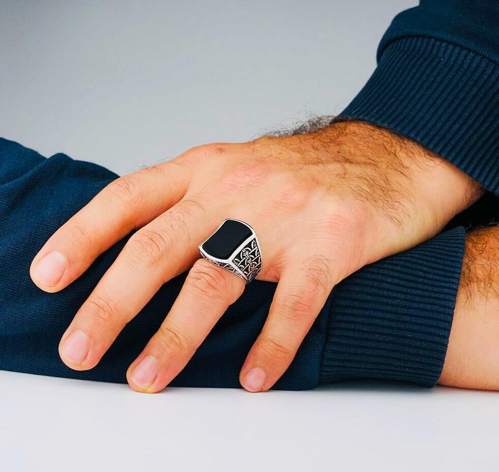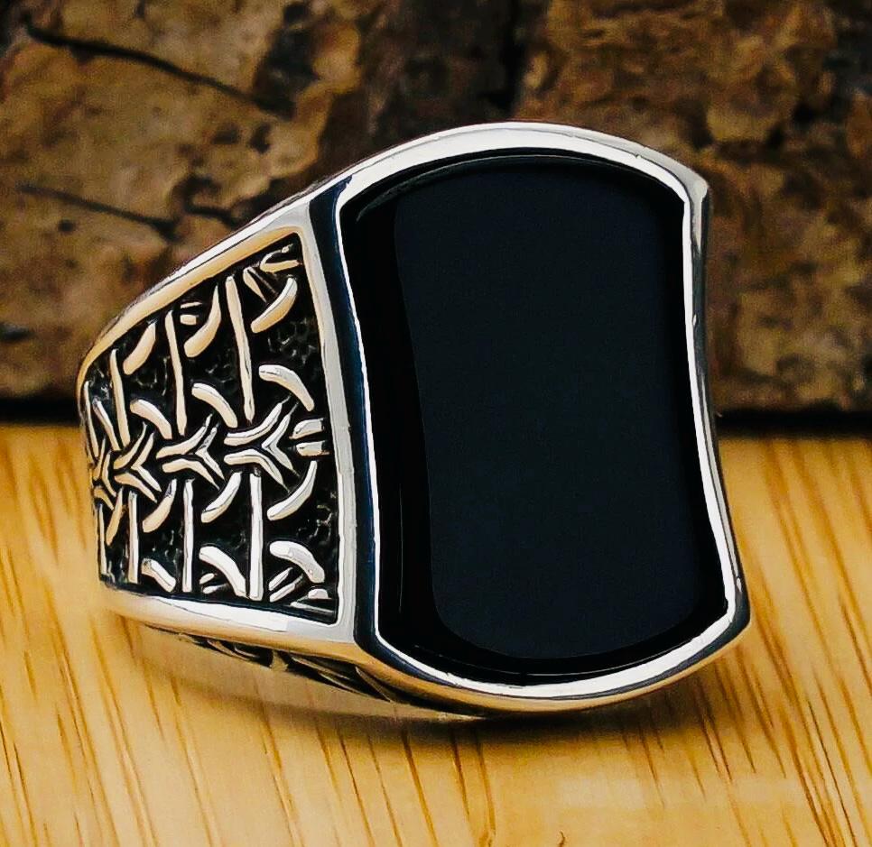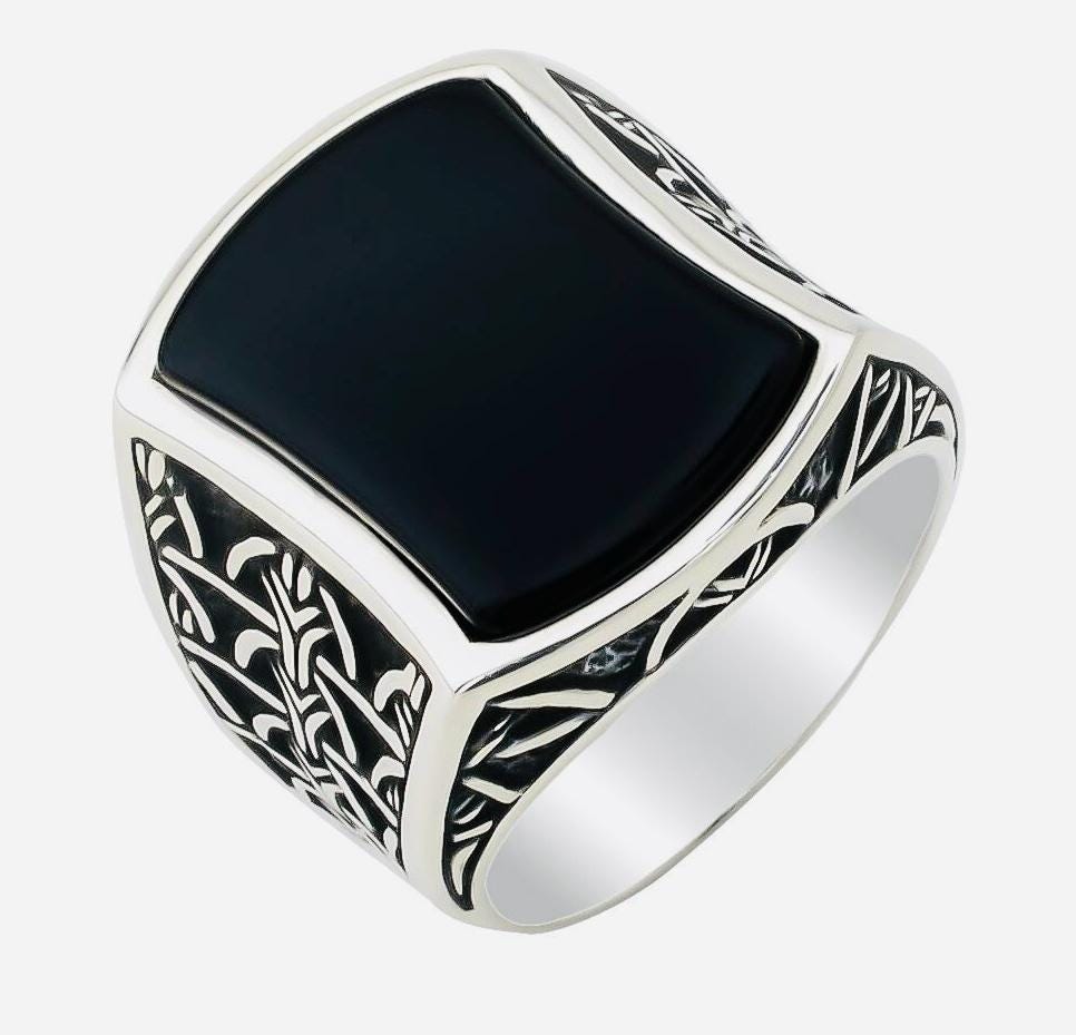 Product Details: • Material: 925 sterling silver • Stone: Onyx • Stone color: Black • Stone size: 1.30 cm x 1.90 cm • Weight: approx. 11 g (may vary by size) • Finish: Polished • Origin: Turkey • Comes in a ring box