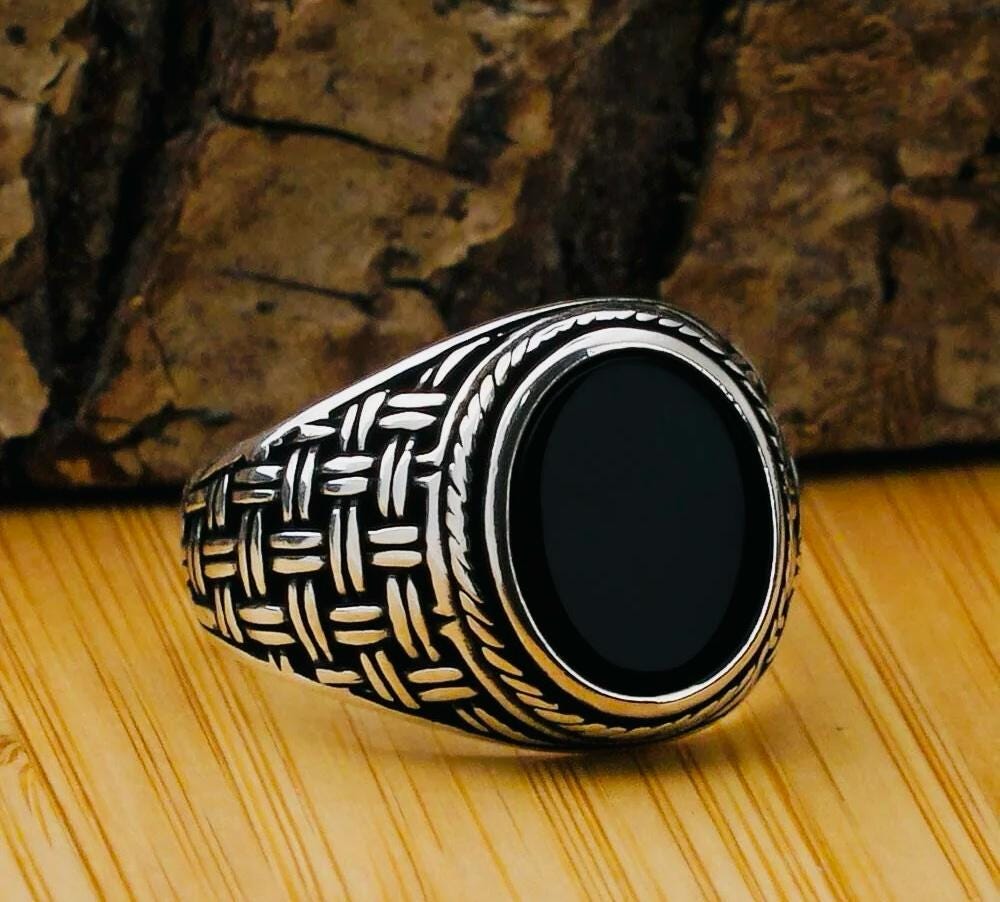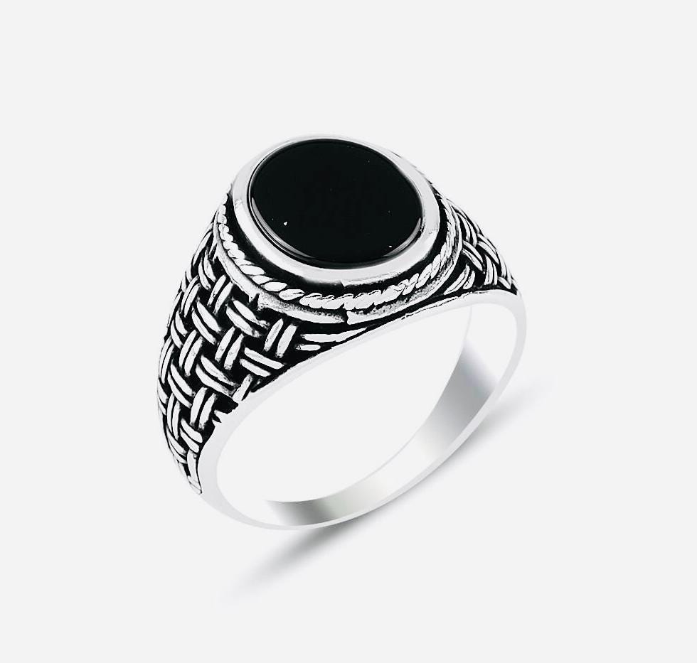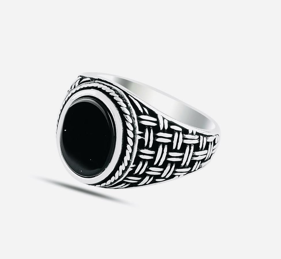Description: This men’s ring combines the timeless elegance of black onyx with a detailed woven pattern, crafted in 925 sterling silver. Its polished surface highlights the unique design, making it perfect for daily wear or special occasions. Delivered in a stylish ring box, it’s also an ideal gift for men who appreciate refined jewelry.