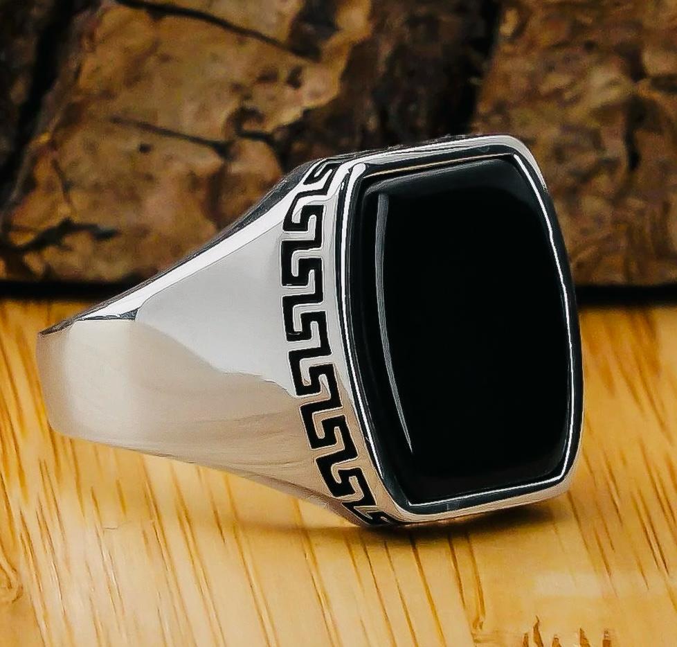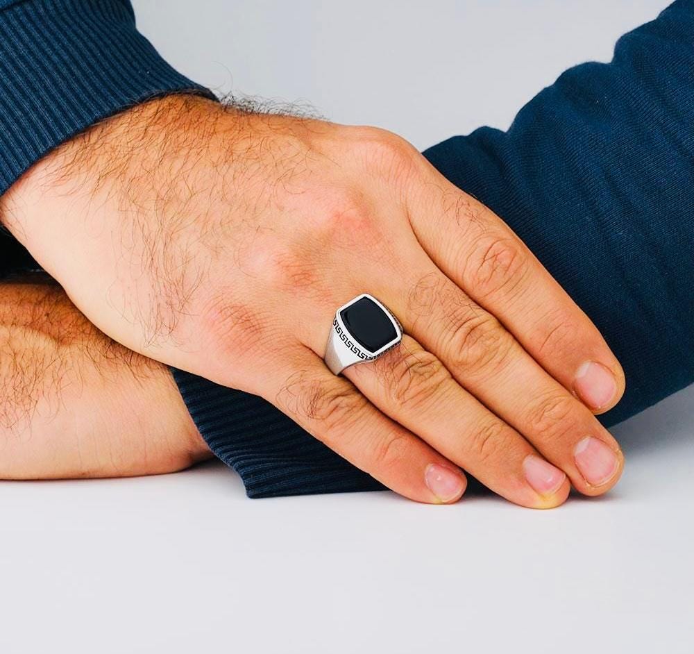 Product Details: • Material: 925 sterling silver • Stone: Onyx • Stone color: Black • Stone size: 1.20 cm x 1.50 cm • Weight: approx. 8.1 g (may vary by size) • Finish: Polished • Origin: Turkey • Comes in a ring box