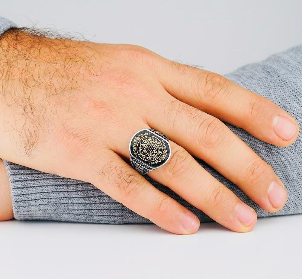 925 Sterling Silver Men’s Ring with Seal of Solomon Design