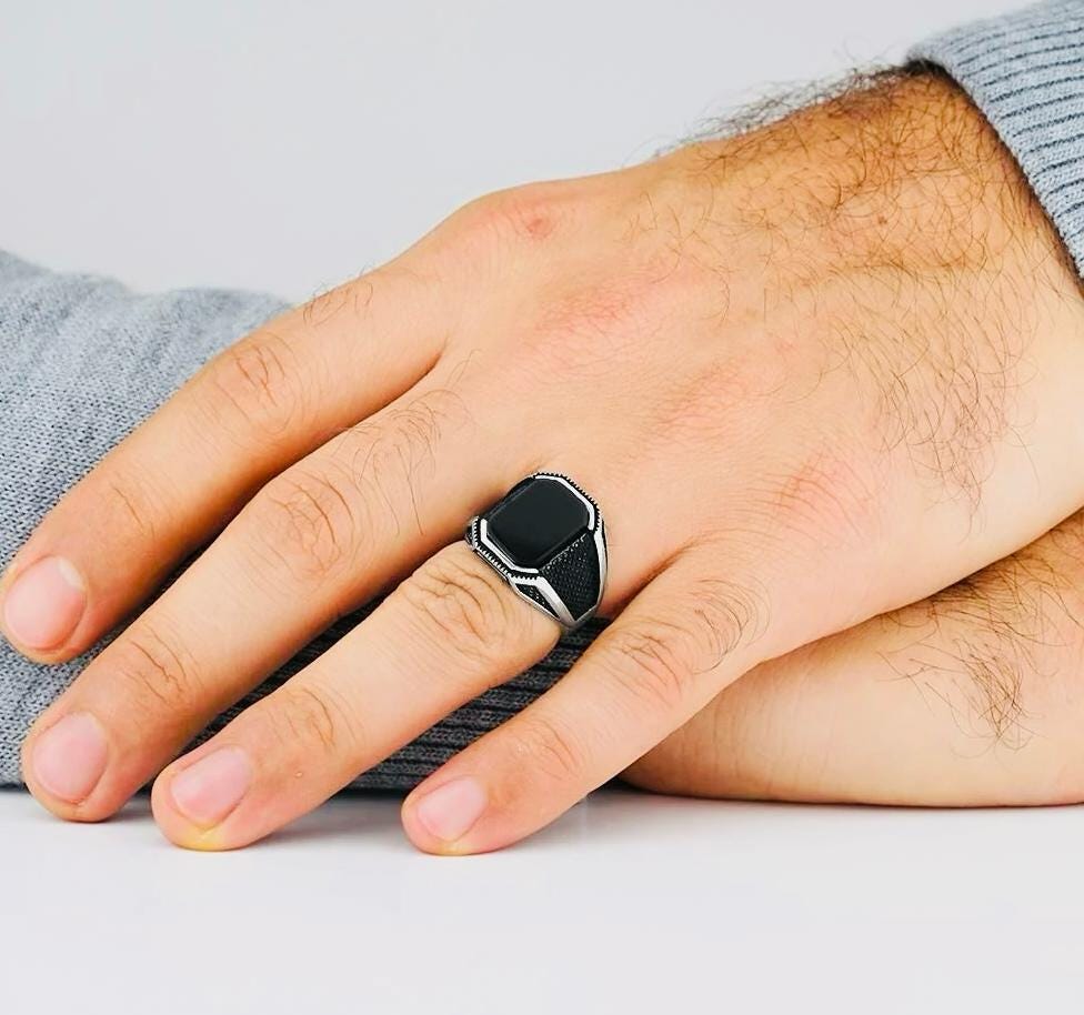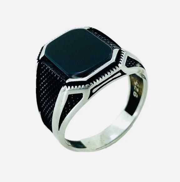 Product Details: • Material: 925 sterling silver • Stone: Black Onyx • Weight: approx. 7 g (may vary by size) • Stone Size: 1.1 cm x 1.4 cm • Finish: Polished • Comes in a ring box