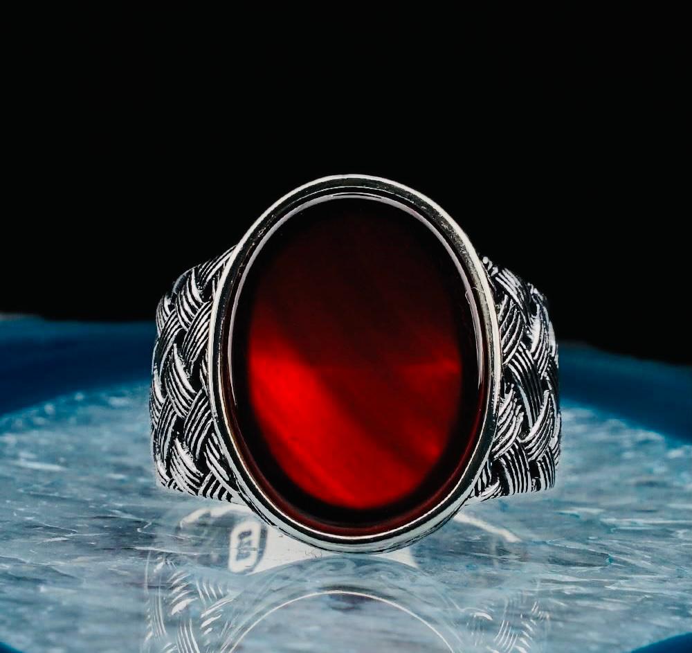 Description: This men’s ring is made from 925 sterling silver and features an oval red agate stone set in a braided design. Red agate is known for its protective and grounding energy, making this ring not only a stylish accessory but also a meaningful piece to wear daily or on special occasions. Delivered in a ring box, it also makes a thoughtful gift for someone special.
