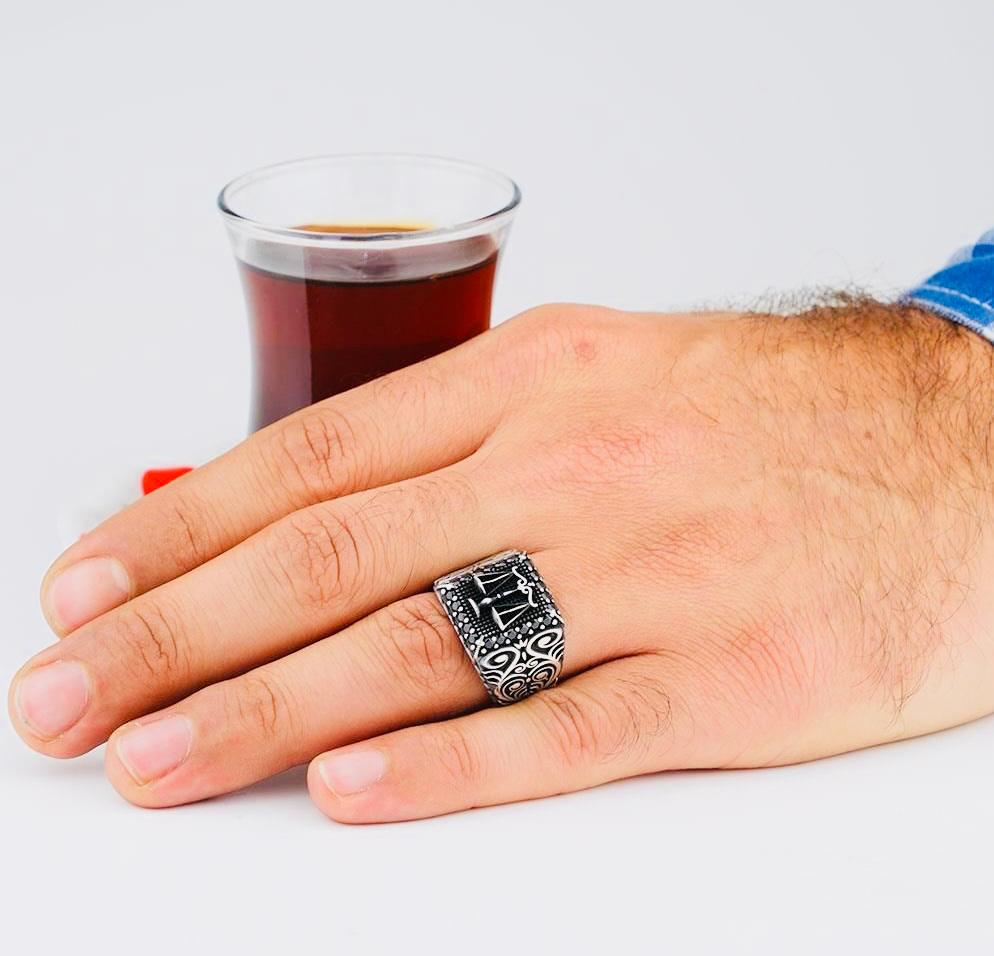 Description: This men’s ring is crafted from 925 sterling silver and features a symbolic Justice Scales design adorned with black micro stones. Representing fairness and impartiality, this ring combines elegance with meaningful symbolism. Perfect for both everyday wear and formal occasions, it is delivered in a stylish ring box, making it a thoughtful gift option.