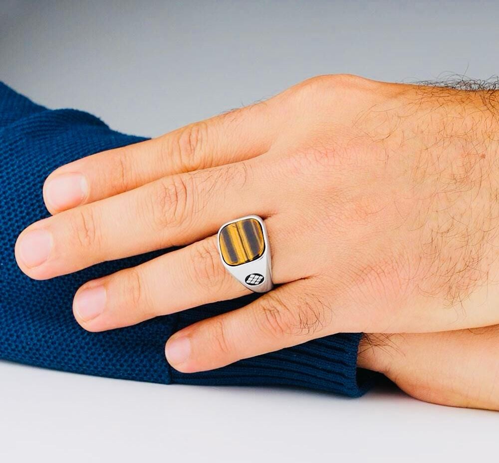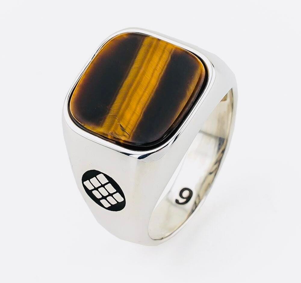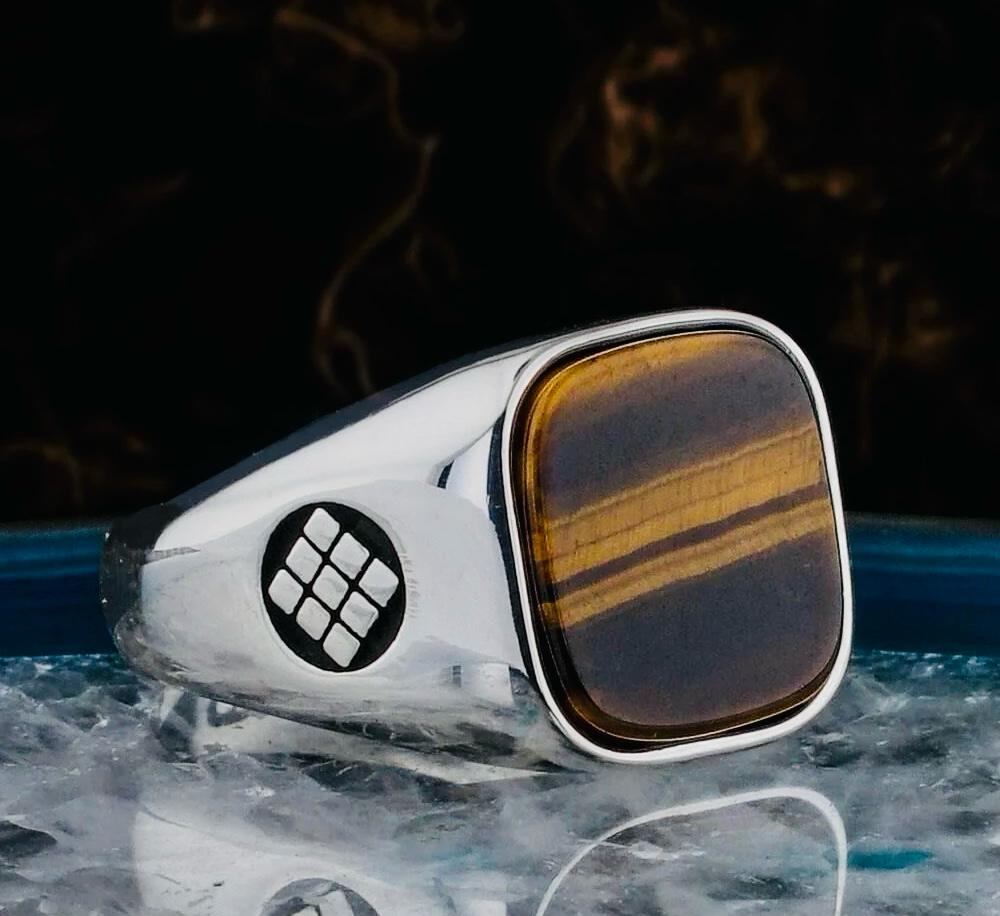 Product Details: • Material: 925 sterling silver • Stone: Tiger Eye • Stone color: Brown • Stone size: 1.5 cm x 1.5 cm • Weight: approx. 12.5 g (may vary by size) • Finish: Polished • Origin: Turkey • Comes in a gift-ready ring box