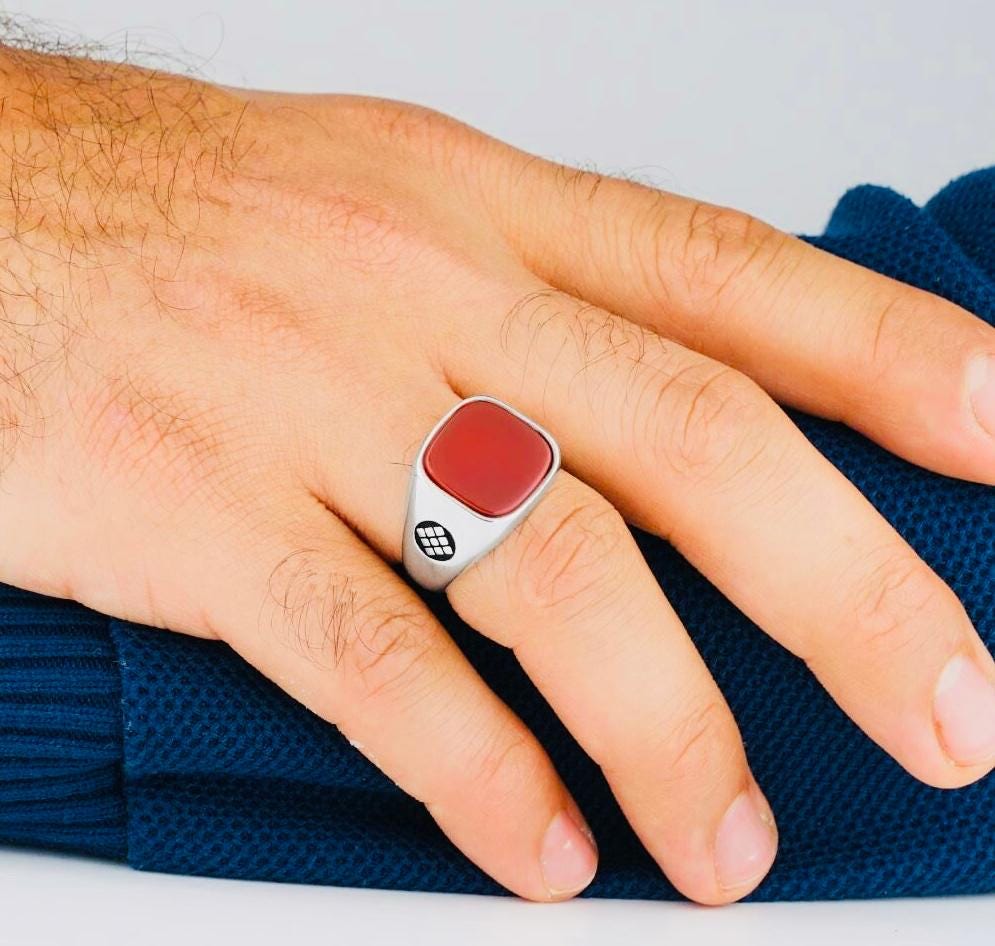 Product Details: • Material: 925 sterling silver • Stone: Red Agate • Stone color: Red • Stone size: 1.5 cm x 1.5 cm • Weight: approx. 12 g (may vary by size) • Finish: Polished • Origin: Turkey • Comes in a gift-ready ring box