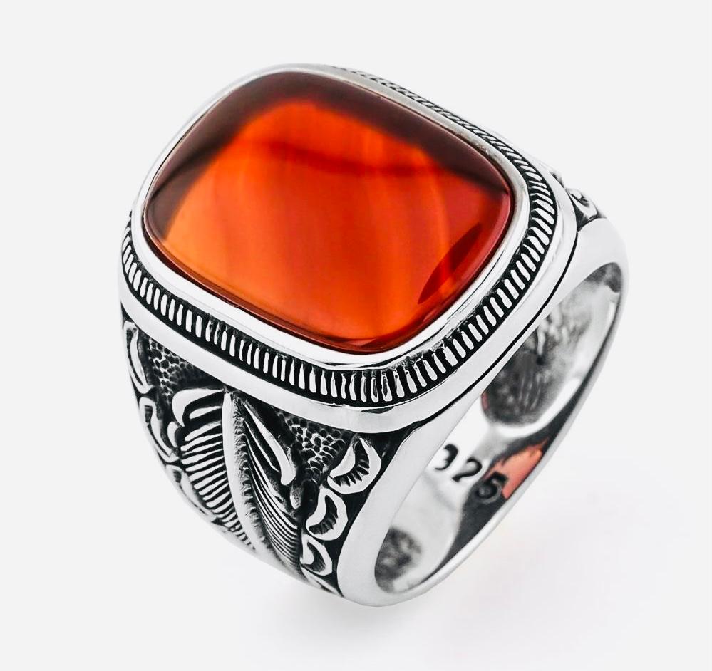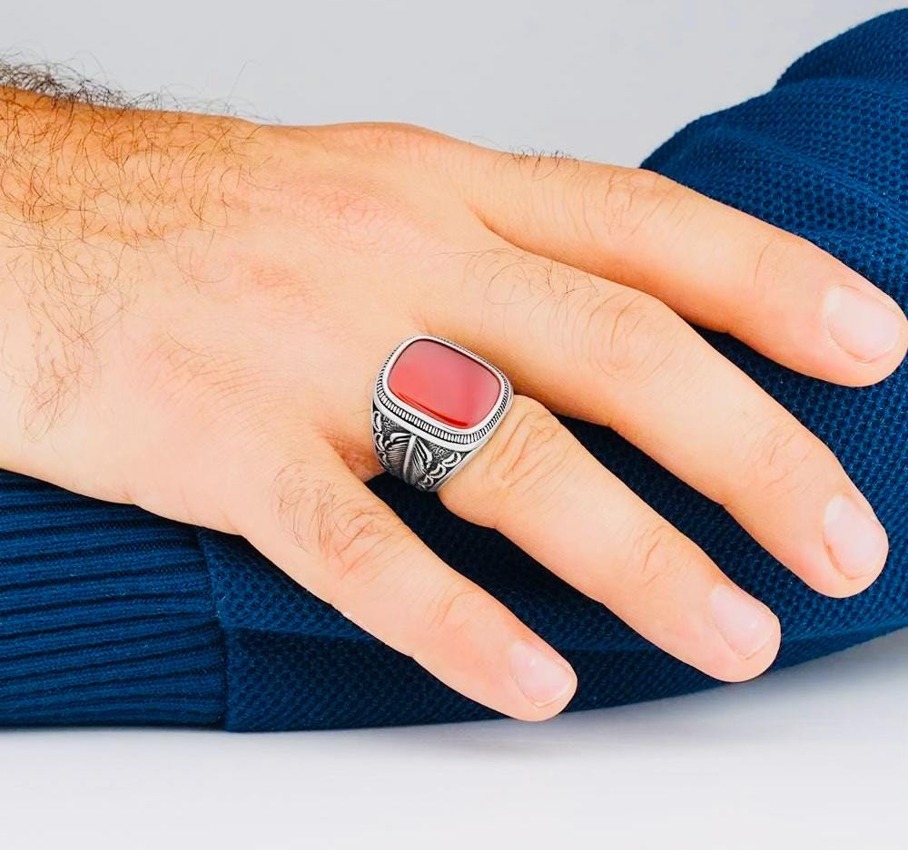 Product Details: • Material: 925 sterling silver • Stone: Red Agate • Stone color: Red • Stone size: 1.8 cm x 1.4 cm • Weight: approx. 13.3 g (may vary by size) • Finish: Polished • Origin: Turkey • Comes in a gift-ready ring box
