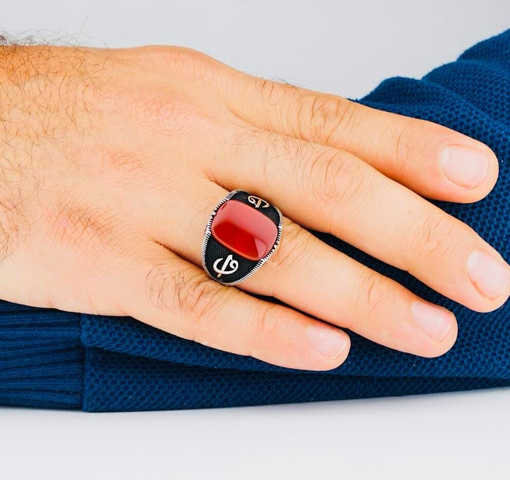 Product Details: • Material: 925 sterling silver • Stone: Red Agate • Stone color: Red • Stone size: 1.8 cm x 1.4 cm • Weight: approx. 12.4 g (may vary by size) • Finish: Polished • Origin: Turkey • Comes in a gift-ready ring box