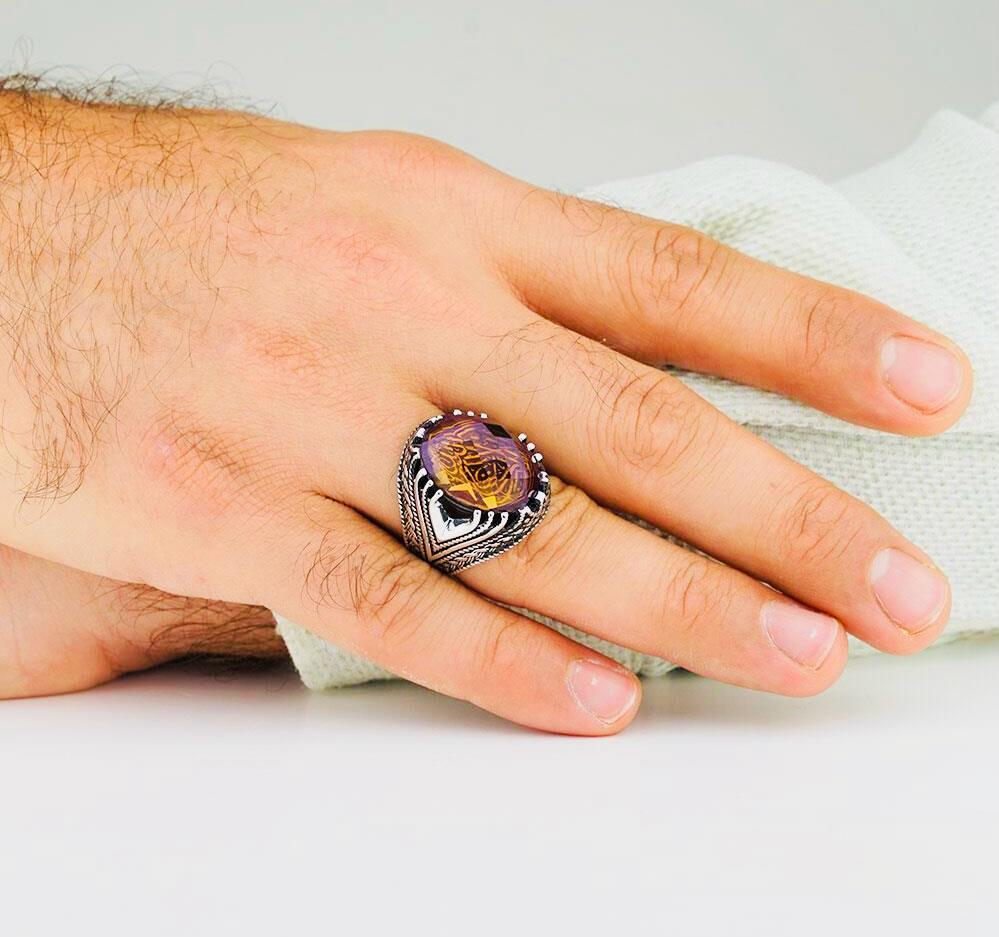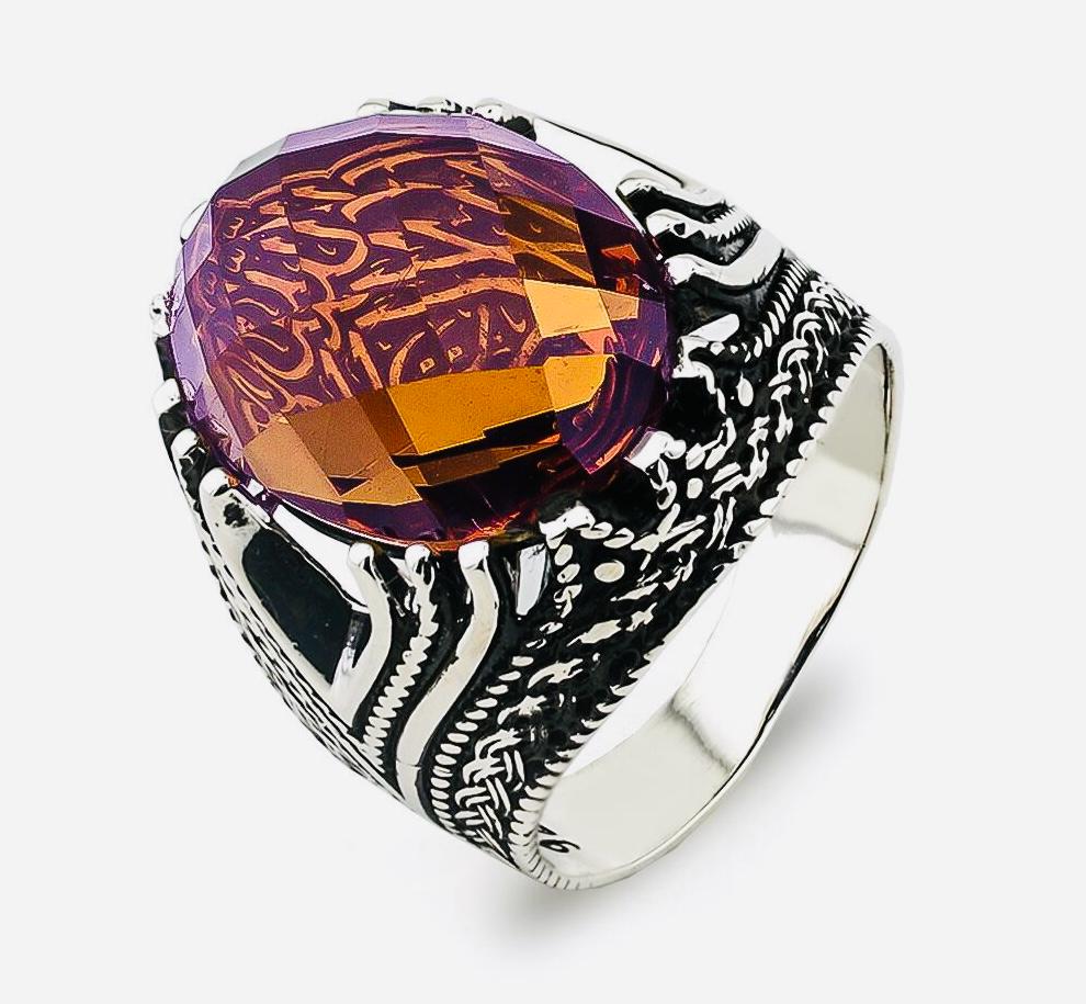 Description: This men’s ring is crafted from 925 sterling silver and set with a stunning Zultanite stone, known for its unique ability to change color under sunlight. The engraving “La Galibe İllallah – There is No Victor but Allah” adds profound spiritual meaning, making this ring both a powerful statement of faith and an elegant accessory. Perfect for daily wear or special occasions, it is delivered in a stylish gift box—an ideal gift for someone special.