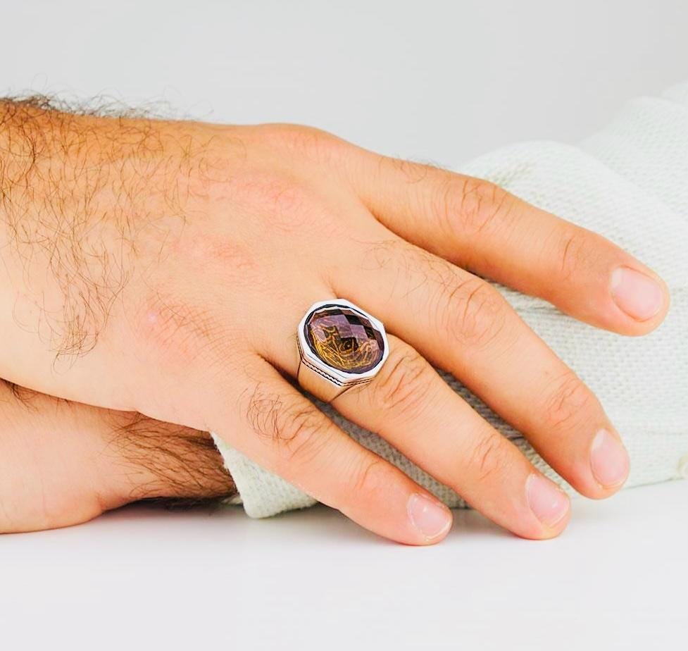 Description: This men’s ring is crafted from 925 sterling silver and features a Zultanite stone with a unique color-changing effect under sunlight. The polished design is beautifully engraved with the phrase “La Galibe İllallah,” symbolizing faith and strength. With its elegant craftsmanship and spiritual meaning, this ring makes a powerful statement piece or a thoughtful gift for someone special.