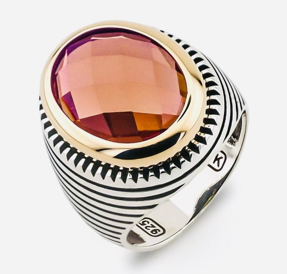Description: This men’s ring is made of 925 sterling silver and features a mesmerizing Zultanite stone, known for its unique color-changing effect under sunlight. The elegant striped design enhances its modern look, making it perfect for both daily wear and special occasions. Delivered in an elegant ring box, it also makes a meaningful gift for someone special.