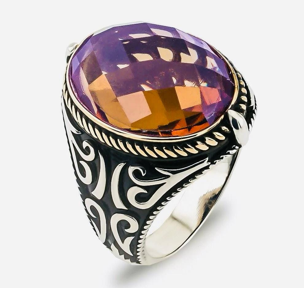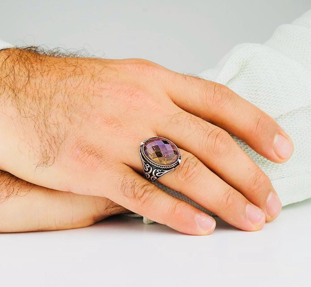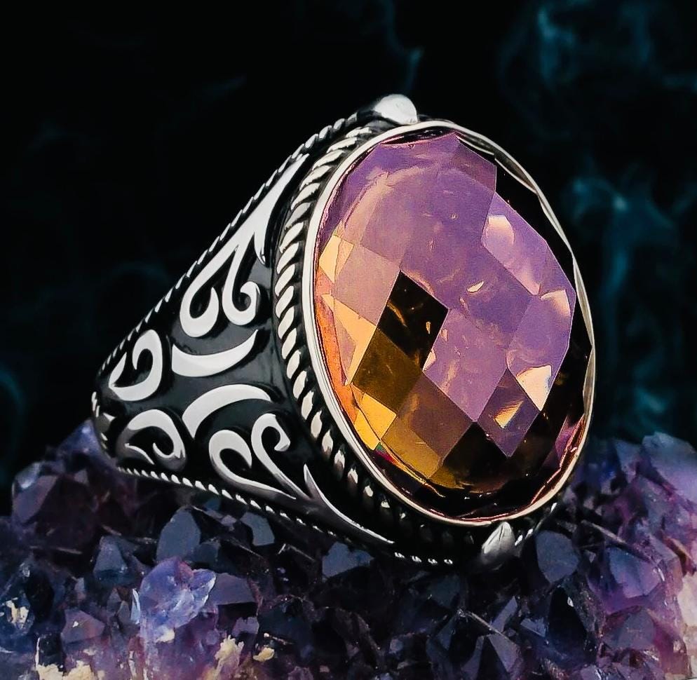 Description: This men’s ring is made of 925 sterling silver and features a unique Zultanite stone, known for its color-changing effect under different lighting conditions. The intricate patterned design adds elegance and character, making it a standout accessory. Perfect for everyday wear or as a meaningful gift, this ring is delivered in a stylish box, ready to impress.
