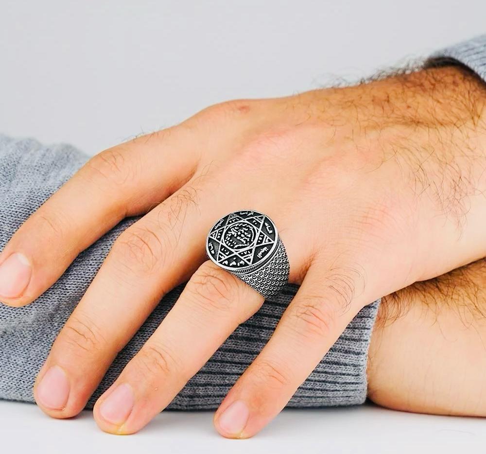 925 Sterling Silver Men’s Ring with Seal of Solomon Design – 15.2 g