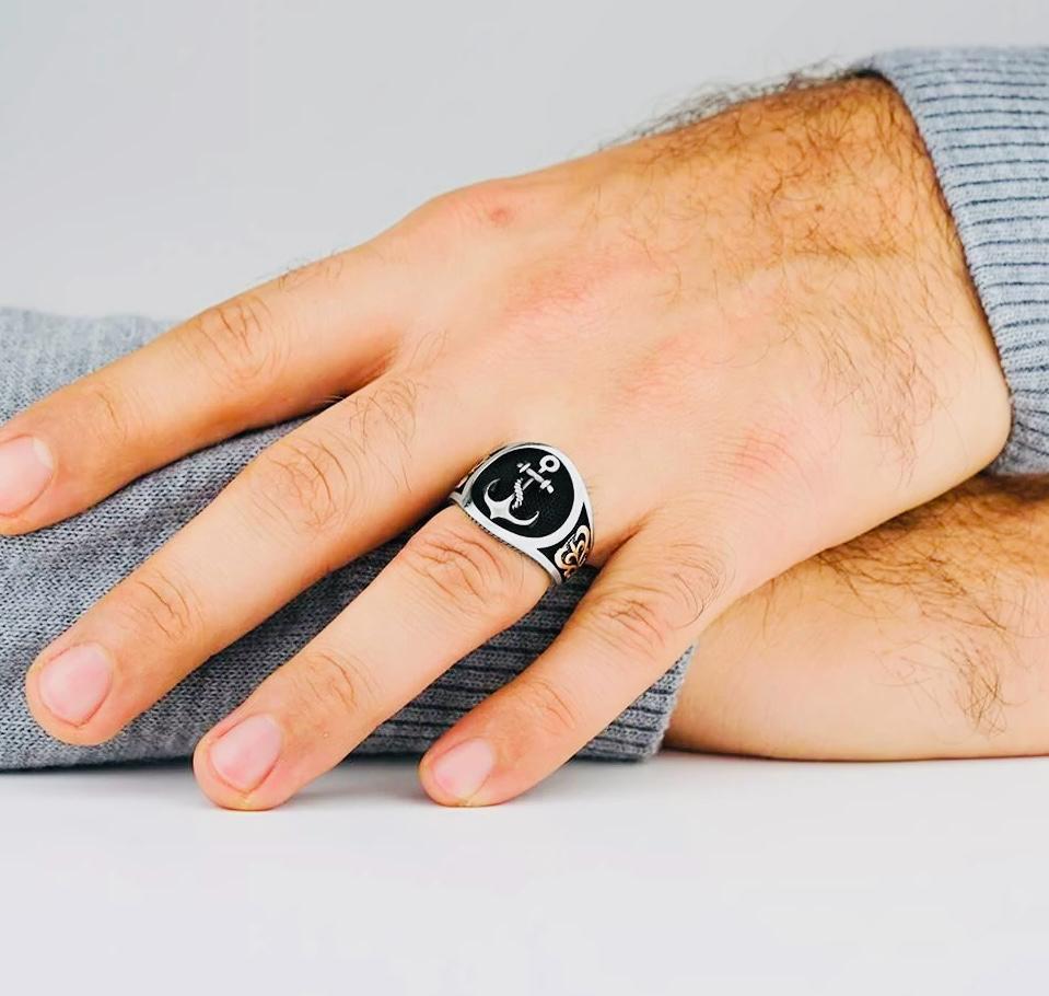 Product Details: • Material: 925 sterling silver • Design: Nautical anchor with detailed engravings • Size: 1.6 cm x 1.8 cm • Weight: approx. 10.2 g (may vary by size) • Finish: Polished • Origin: Turkey • Comes in a ring box